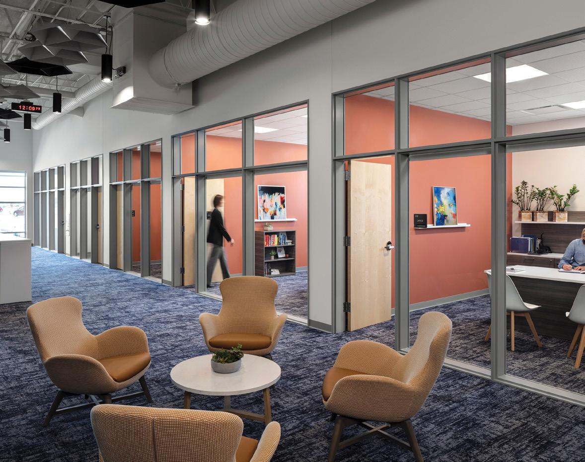 The project achieved LEED Gold and Fitwel 2-star certifications through a comprehensive sustainability strategy focused on outdoor connectivity, efficient resource use and healthy materials. (Editor’s Note: Read more about this project at www.retrofitmagazine.com/a-research-campus-nowprioritizes-community-building.)