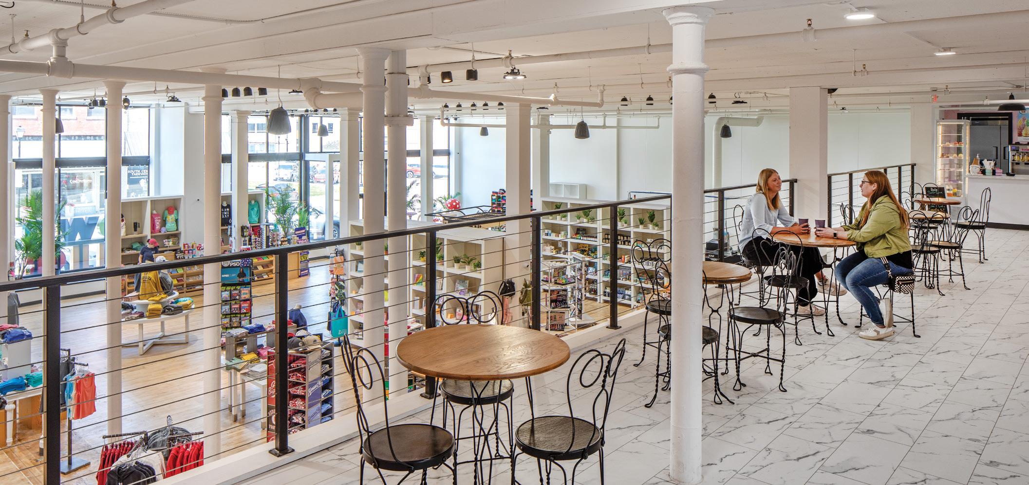 As one of the earliest buildings on Hastings’ main downtown drag, it was important to locals to save it. The mezzanine level overlooks the retail space and includes gathering space and an ice cream parlor.