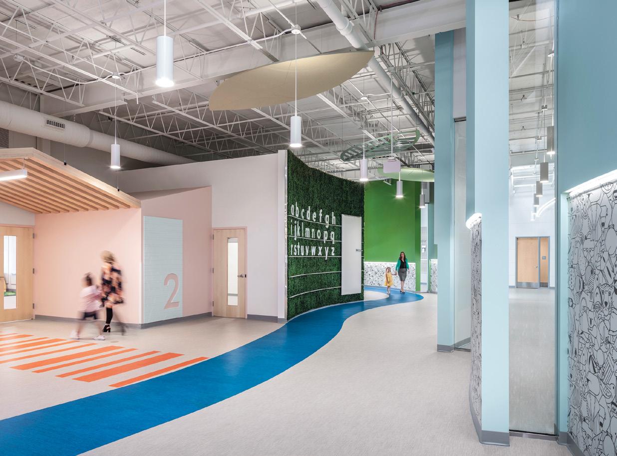 Galesburg Community Unit School District 205, Galesburg, Ill., purchased a nondescript community church and hired Legat Architects to reimagine it into a vibrant home away from home for the district’s youngest students. Now known as Bright Futures Preschool, the redesign earned 1st Place in the “Interior” category, thanks to its warm, bright and welcoming atmosphere. Read the story, written by Doug Ogurek, LEED AP BD+C, Legat Architects’ director of communications, on page 34.