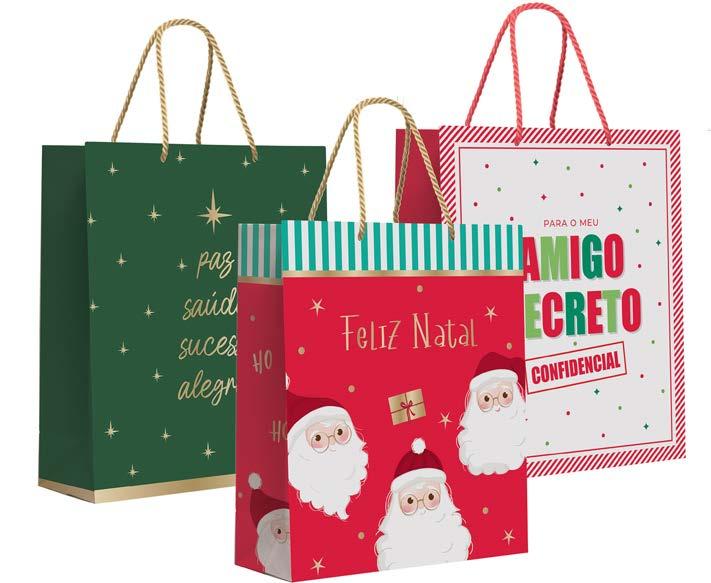 Sacola para presente de Natal Média 21x27x10cm (S) pacote com 12 R$ 56,90 | SP-R$ 56,90