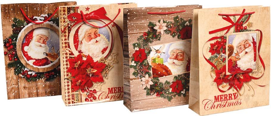 Sacola para presente de Natal Papai Noel 18x24x7cm 4 Modelos (S) pacote com 12 R$ 31,50 | SP-R$ 33,50