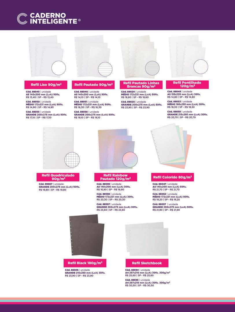 universitário CódigoDescrição EmbalagemR$SP-R$ 022120 Quadriculado Branco 1x1cm 50 fls.pacote com 5 42,6046,60 Bloco para fichário universitário CódigoDescrição EmbalagemR$SP-R$ 091855 10 Cores 10 Materias 200 fls. 56g unidade 19,5021,33