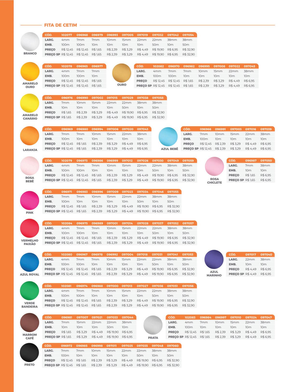 Código 033572 cor 209 15mm22mm38mm 209209 033573033574 largura preço preço sp 6,908,2911,59 6,908,2911,59 Código 033575 cor 206 15mm22mm38mm 206206 033576033577 largura preço preço sp 6,908,2911,59 6,908,2911,59 Código 033578 cor 213 15mm22mm38mm 213213 033579033583 largura preço preço sp 6,908,2911,59 6,908,2911,59 Código 033584 cor 217 15mm22mm38mm 217217 033585033586 largura preço preço sp 6,908,2911,59 6,908,2911,59 preto prata Branco ouro vermelho rosa claro azul turquesa verde bandeira vermelho rosa claro azul turquesa verde bandeira Código 033587 cor 219 15mm22mm38mm 219219 033588033589 largura preço preço sp 6,908,2911,59 6,908,2911,59 Código 033590 cor 375 15mm22mm38mm 375375 033591033592 largura preço preço sp 6,908,2911,59 6,908,2911,59 Código 033593 cor 201 15mm22mm38mm 201201 033594033595 largura preço preço sp 6,908,2911,59 6,908,2911,59 Código 033596 cor 228 15mm22mm38mm 228228 033597033598 largura preço preço sp 6,908,2911,59 6,908,2911,59 Código 033599 cor 209 15mm22mm38mm 209209 033606033607 largura preço preço sp 6,908,2911,59 6,908,2911,59 Código 033608 cor 206 15mm22mm38mm 206206 033609033610 largura preço preço sp 6,908,2911,59 6,908,2911,59 Código 033611 cor 213 15mm22mm38mm 213213 033612033613 largura preço preço sp 6,908,2911,59 6,908,2911,59 Código 033614 cor 217 15mm22mm38mm 217217 033615033616 largura preço preço sp 6,908,2911,59 6,908,2911,59