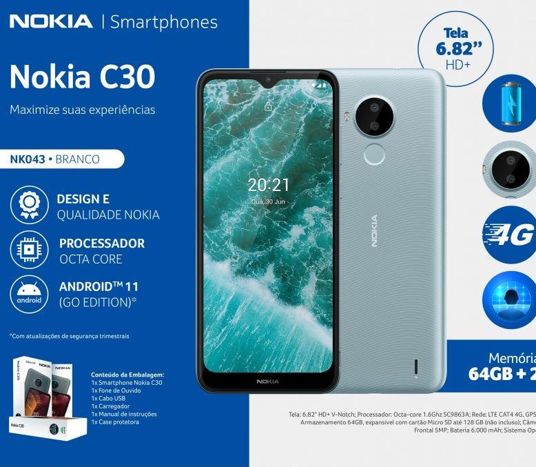 3 Cód. 192014 Smartphone Nokia C30 64GB Branco unidade R$1.090,00 | SP-R$1.180,25