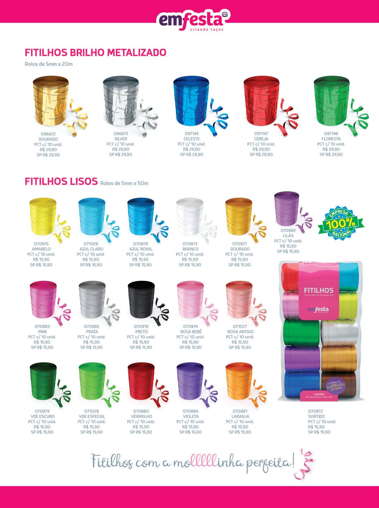040243 - AMARELO CANÁRIO 040242 - AZUL 040240 - BRANCO 040245 - DOURADO 040244 - PRATA 040246 - ROSA 040241 - VERDE 040247 - VERMELHO 096594 - VERDE MILITAR 096596 - ROXO 096597 - CHAMPAGNE 096598 - PRETO 096599 - LARANJA R$ 6,90