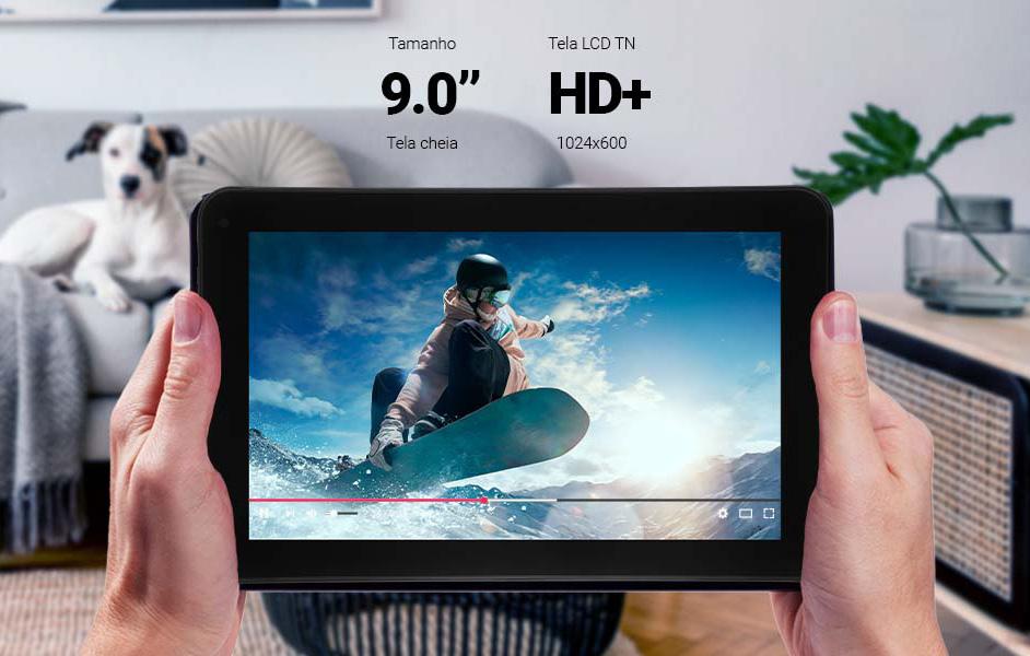 Especificações: Hardwware Processador Quad Core 1.5GHz, Sistema Operacional Android 11 (Go Edition), Memória Ram 1GB, Armazenamento 32GB expansível até 64GB por cartão micro SD (não incluso), Tela 9” LCD TN 1024 x 600, Conexões WiFi e Bluetooth, Bateria Lítio Capacidade de 3.500 mAh, Câmera Frontal 1.3MP. *Imagens Meramente Ilustrativas*
