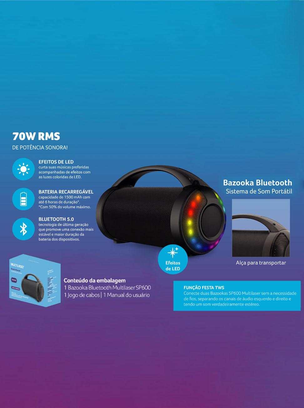 Uma excelente opção para utilizar em seus momentos de lazer, sejam eles uma reunião entre amigos, festa ou confraternização, seu corpo emborrachado e resistente a água, com certificacao IPX6, o que traz uma tranquilidade a mais contra eventuais acidentes.