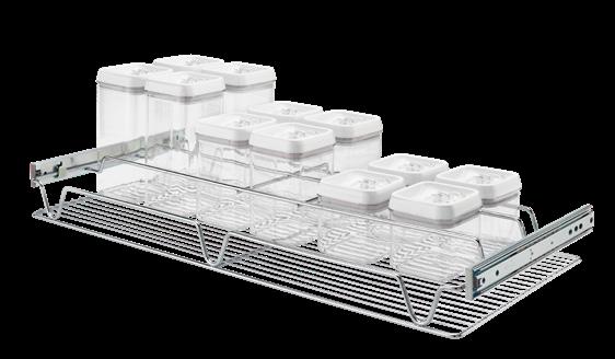 5758-04-CR-1 Pantry Pullout 4-13/32” (113 mm) W x 21-23/32” (552 mm) D x 58-1/4 - 65-3/4” (1480 - 1671 mm) H 4-1/2” (114 mm) T9 $1,174.50 5758-08-CR-1 Pantry Pullout 8” (204 mm) W x 21-23/32” (552 mm) D x 58-1/4 - 65-3/4” (1480 - 1671 mm) H 8-1/2” (216 mm) T12 $1,348.50 5758-10-CR-1 Pantry Pullout 10” (254 mm) W x 21-23/32” (552 mm) D x 58-1/4 - 65-3/4” (1480 - 1671 mm) H 10-1/2” (268 mm) T15 $1,334.00 5758-14-CR-1 Pantry Pullout 14” (356 mm) W x 21-23/32” (552 mm) D x 58-1/4 - 65-3/4” (1480 - 1671 mm) H 14-7/8” (378 mm) T18 $1,450.00 5758-16-CR-1 Pantry Pullout 16” (407 mm) W x 21-23/32” (552 mm) D x 58-1/4 - 65-3/4” (1480 - 1671 mm) H 16-1/2” (419 mm) T21 $1,464.50 5758-20-CR-1 Pantry Pullout 20” (508 mm) W x 21-23/32” (552 mm) D x 58-1/4 - 65-3/4” (1480 - 1671 mm) H 20-1/2” (521 mm) T24 $1,537.00 Wire Pantry Pullout w/ Soft-Close — (6) Shelves/ (4) Door-Mount Brackets 5773-04-CR-1 Pantry Pullout 4-13/32” (113 mm) W x 21-23/32” (552 mm) D x 73-5/8 - 80-3/4” (1871 - 2052 mm) H 4-1/2” (114 mm) T9 $1,174.50 5773-08-CR-1 Pantry Pullout 8” (204 mm) W x 21-23/32” (552 mm) D x 73-5/8 - 80-3/4” (1871 - 2052 mm) H 8-1/2” (216 mm) T12 $1,377.50 5773-10-CR-1 Pantry Pullout 10” (254 mm) W x 21-23/32” (552 mm) D x 73-5/8 - 80-3/4” (1871 - 2052 mm) H 10-1/2” (268 mm) T15 $1,435.50 5773-14-CR-1 Pantry Pullout 14” (356 mm) W x 21-23/32” (552 mm) D x 73-5/8 - 80-3/4” (1871 - 2052 mm) H 14-7/8” (378 mm) T18 $1,551.50 5773-16-CR-1 Pantry Pullout 16” (407 mm) W x 21-23/32” (552 mm) D x 73-5/8 - 80-3/4” (1871 - 2052 mm) H 16-1/2” (419 mm) T21 $1,595.00 5773-20-CR-1 Pantry Pullout 20” (508 mm) W x 21-23/32” (552 mm) D x 73-5/8 - 80-3/4” (1871 - 2052 mm) H 20-1/2” (521 mm) T24 $1,653.00 Accessories 57-EXTEND-1 Extender Bracket 1-1/8” (29 mm) W x 1-1/8” (29 mm) D x 8” (203 mm) H $21.75