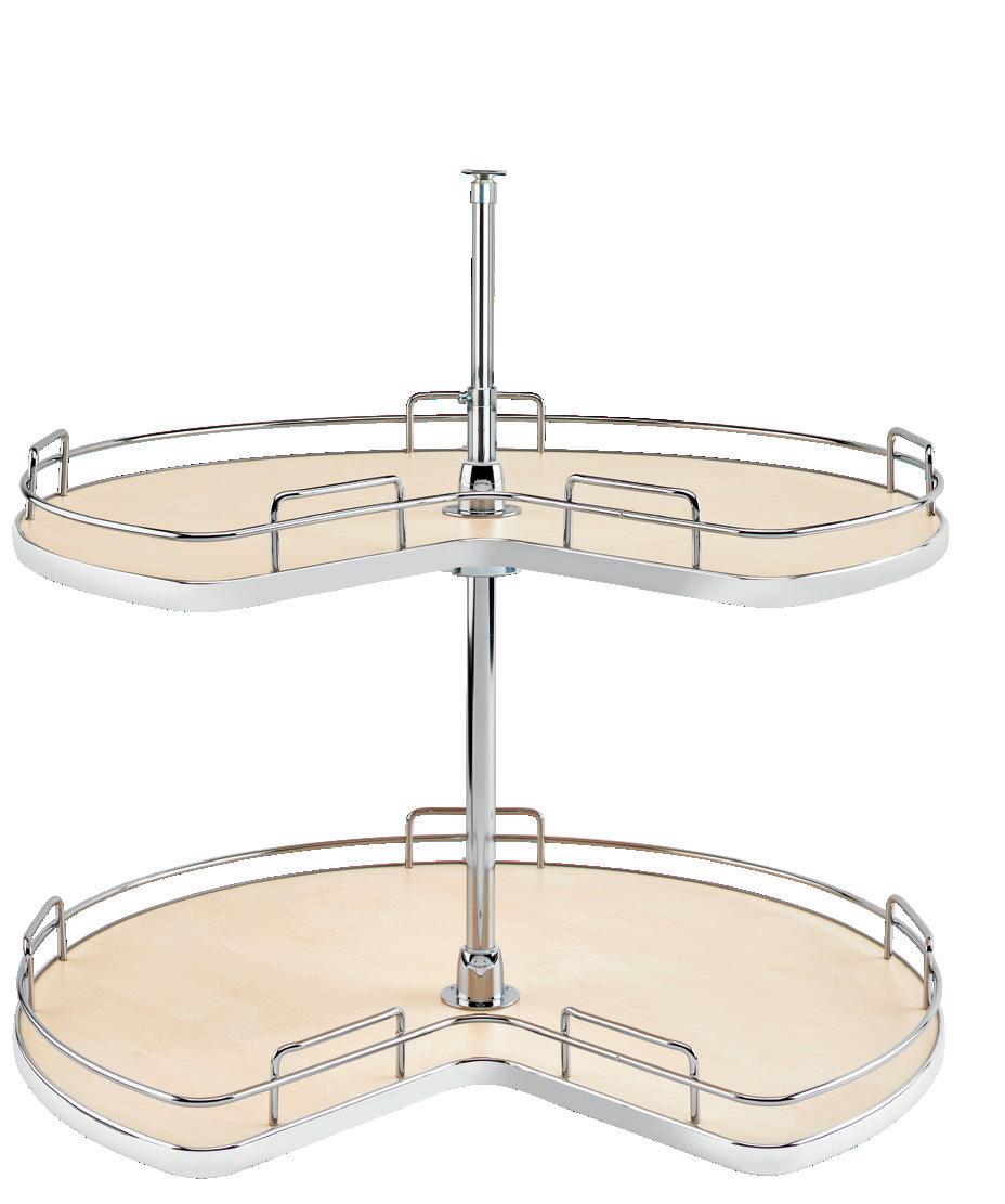 PRODUCT DESCRIPTION DIMS FINISH SLP 3071-18-**-52 Single Shelf 18" (457 mm) Diameter Polymer $34.80 3071-20-**-52 Single Shelf 20" (508 mm) Diameter Polymer $39.15 3071-24-**-52 Single Shelf 24" (610 mm) Diameter Polymer $43.50 3071-28-**-52 Single Shelf 28" (711 mm) Diameter Polymer $53.65 Bottom Mount Hardware BM1-VL-04-52 Hardware 4-1/4" (108 mm) H Zinc $26.95 (2) Shelf Value Line Lazy Susan w/ 26"-31" (660–788 mm) Telescoping Post 3072-18-**-52 (2) Shelf Set 18" (457 mm) Diameter Polymer $76.85 3072-20-**-52 (2) Shelf Set 20" (508 mm) Diameter Polymer $85.55 3072-24-**-52 (2) Shelf Set 24" (610 mm) Diameter Polymer $97.15 3072-28-**-52 (2) Shelf Set 28" (711 mm) Diameter Polymer $111.65 (3) Shelf Value Line Lazy Susan w/ 31"-38" (788–965 mm) Telescoping Post 3073-18-**-531 (3) Shelf Set 18" (457 mm) Diameter Polymer $119.65 3073-20-**-531 (3) Shelf Set 20" (508 mm) Diameter Polymer $126.15 (3) Shelf Value Line Lazy Susan w/ 38"-46" (965–1169 mm) Telescoping Post 3073-18-**-536 (3) Shelf Set 18" (457 mm) Diameter Polymer $122.50 3073-20-**-536 (3) Shelf Set 20" (508 mm) Diameter Polymer $128.30