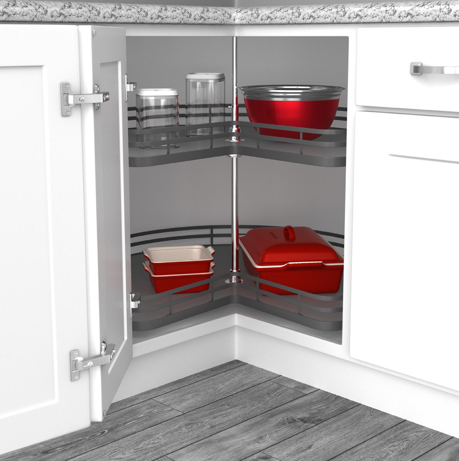 Standing the test of time, our Lazy Susan line is revered as the best in the industry with exceptional quality, unfaltering durability and premium selection! Our extensive collection of Lazy Susans includes Full-Circle, Kidney-Shaped, D-Shaped, Pie-Cut and Half-Moon designs to accommodate any cabinet shape. With sizes ranging from 10" to 32" and your choice of polymer, wood or wire, you are sure to find the perfect Susan for any cabinet size or style. The bottom line - we know Lazy Susans! Next time you are specifying a Lazy Susan, call on the brand you can trust for superior quality and the brand that started it all: Rev-A-Shelf ®!
