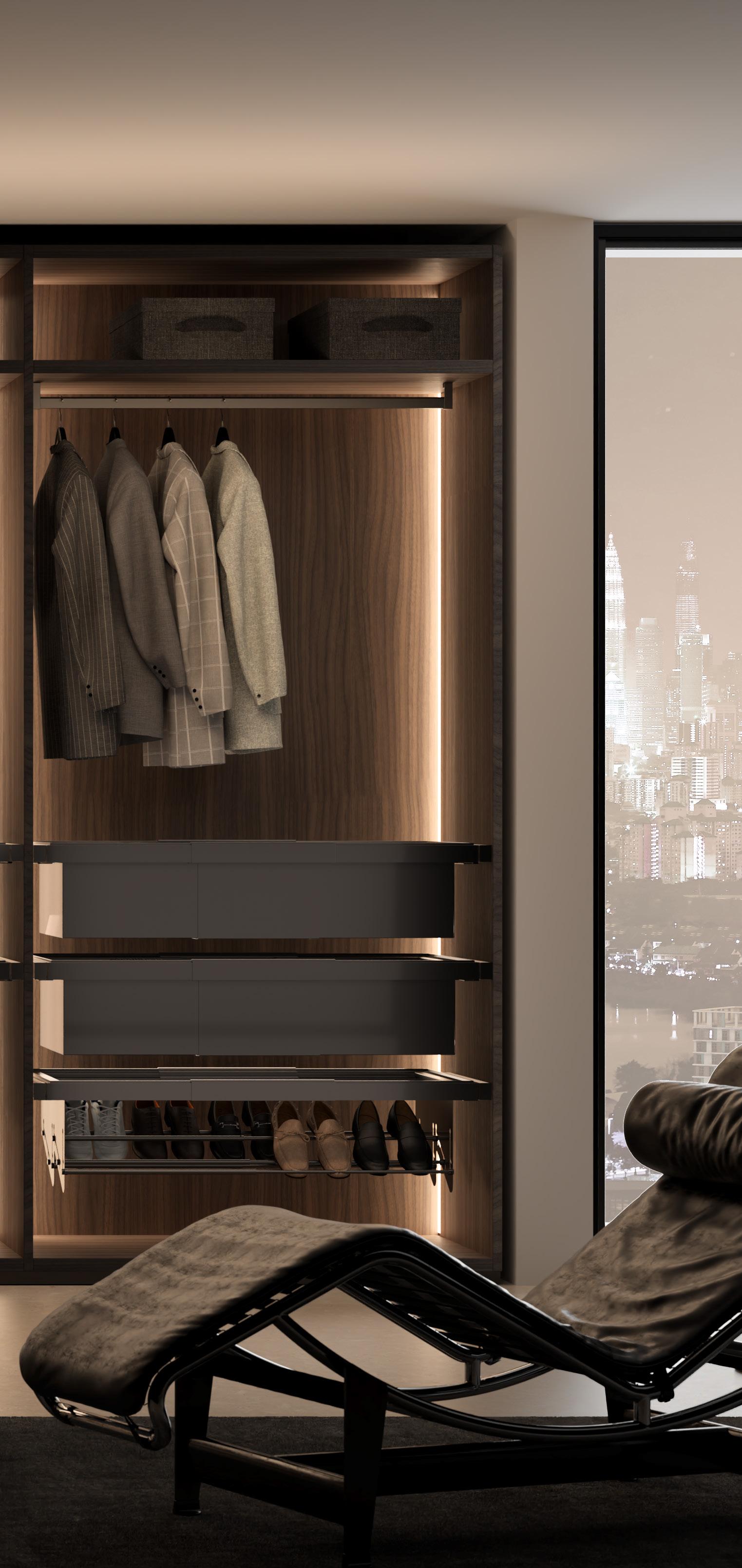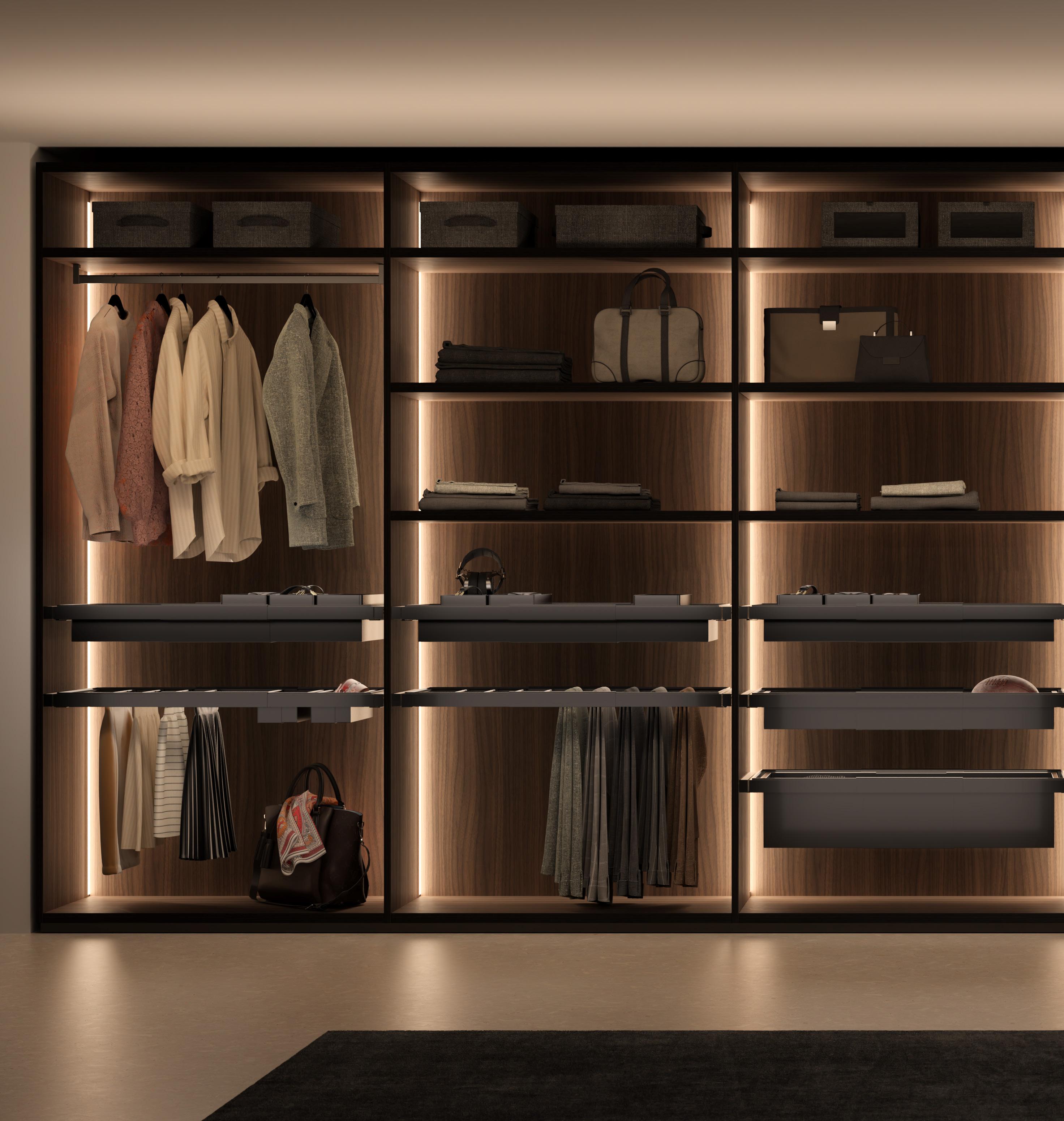 This next chapter represents a more integrated approach to cabinetry - where organization, wood components, shelving and lighting are designed to work together seamlessly.