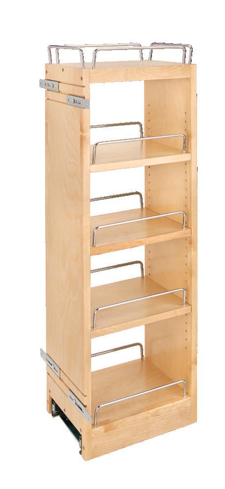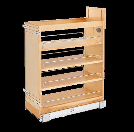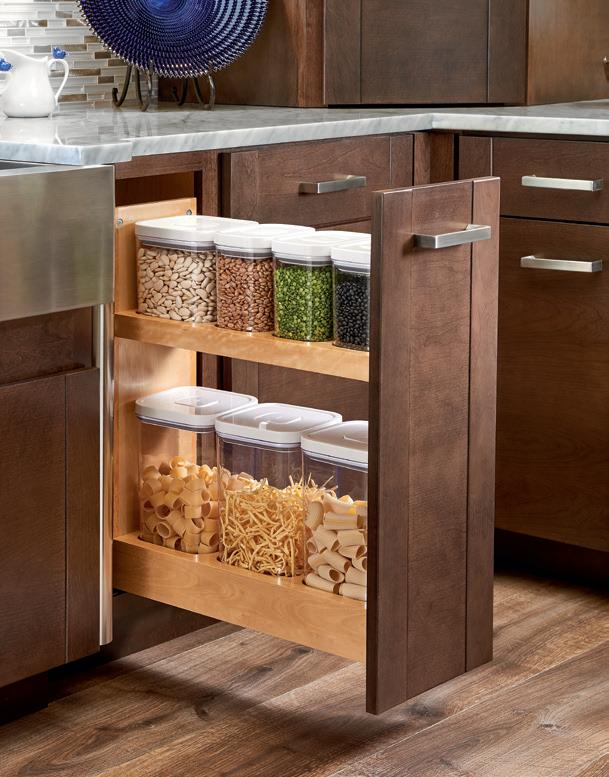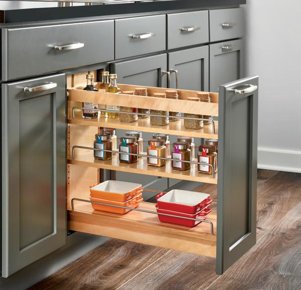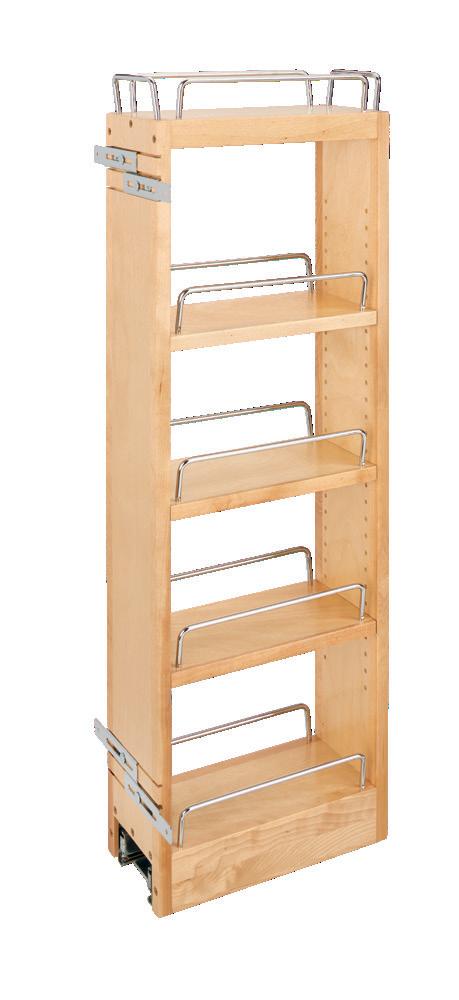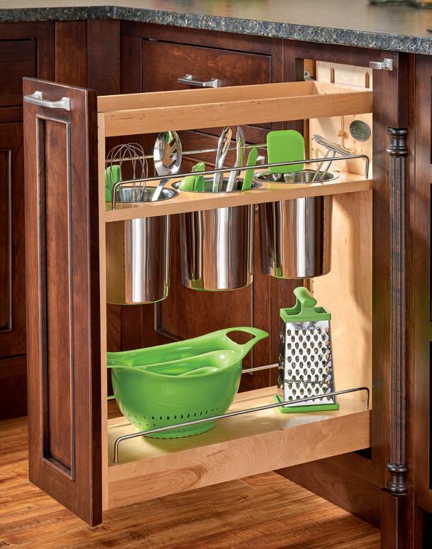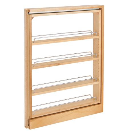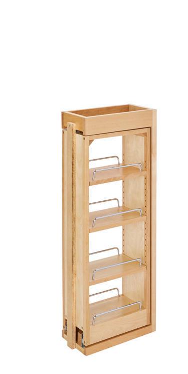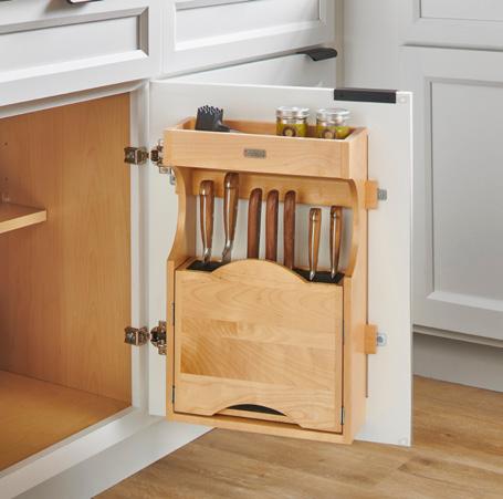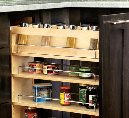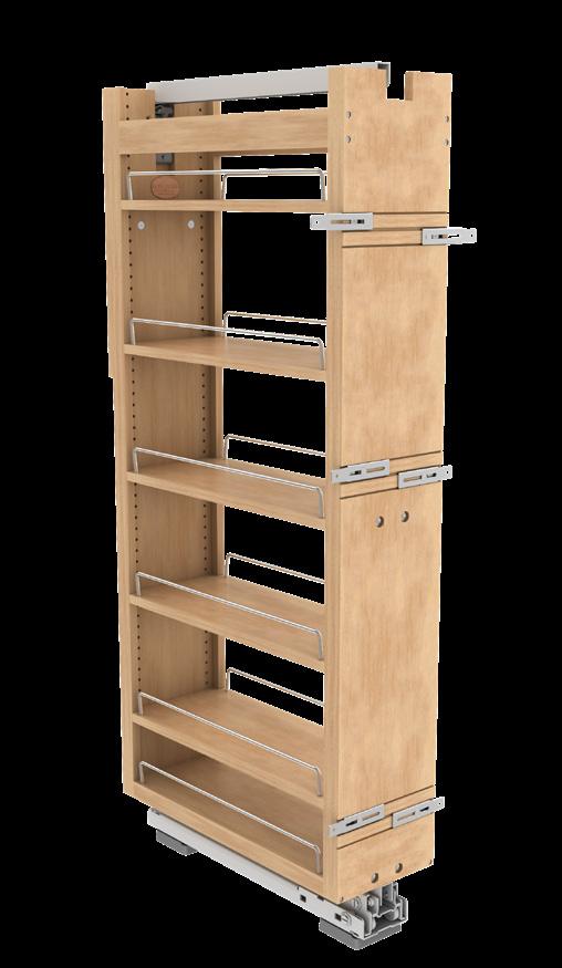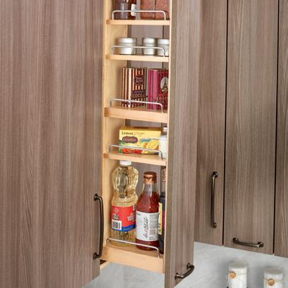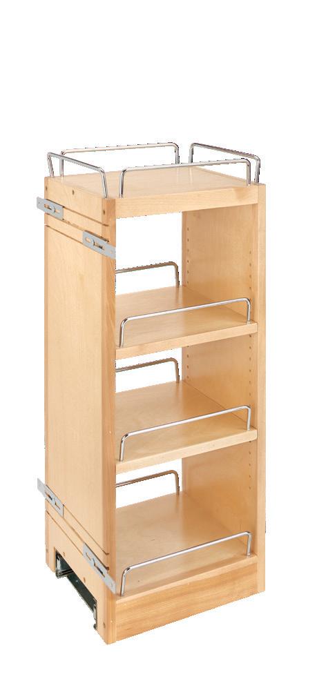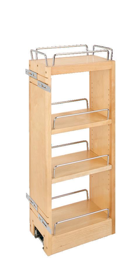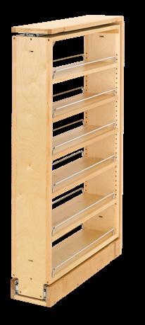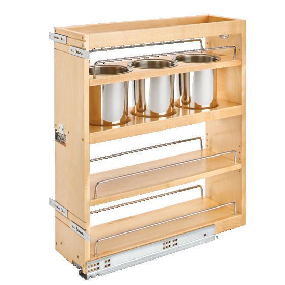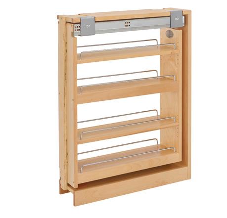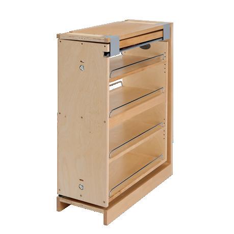 Now available in walnut or maple and designed for 9” and 12” base cabinets, it features a fixed top shelf