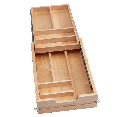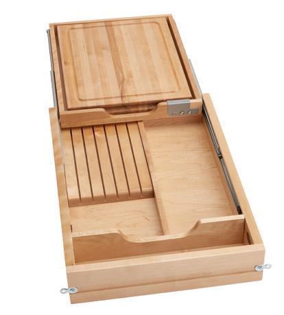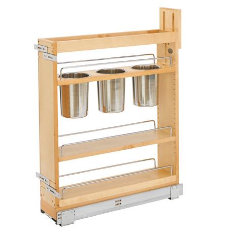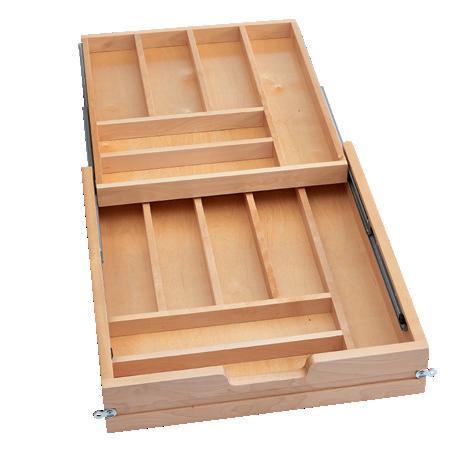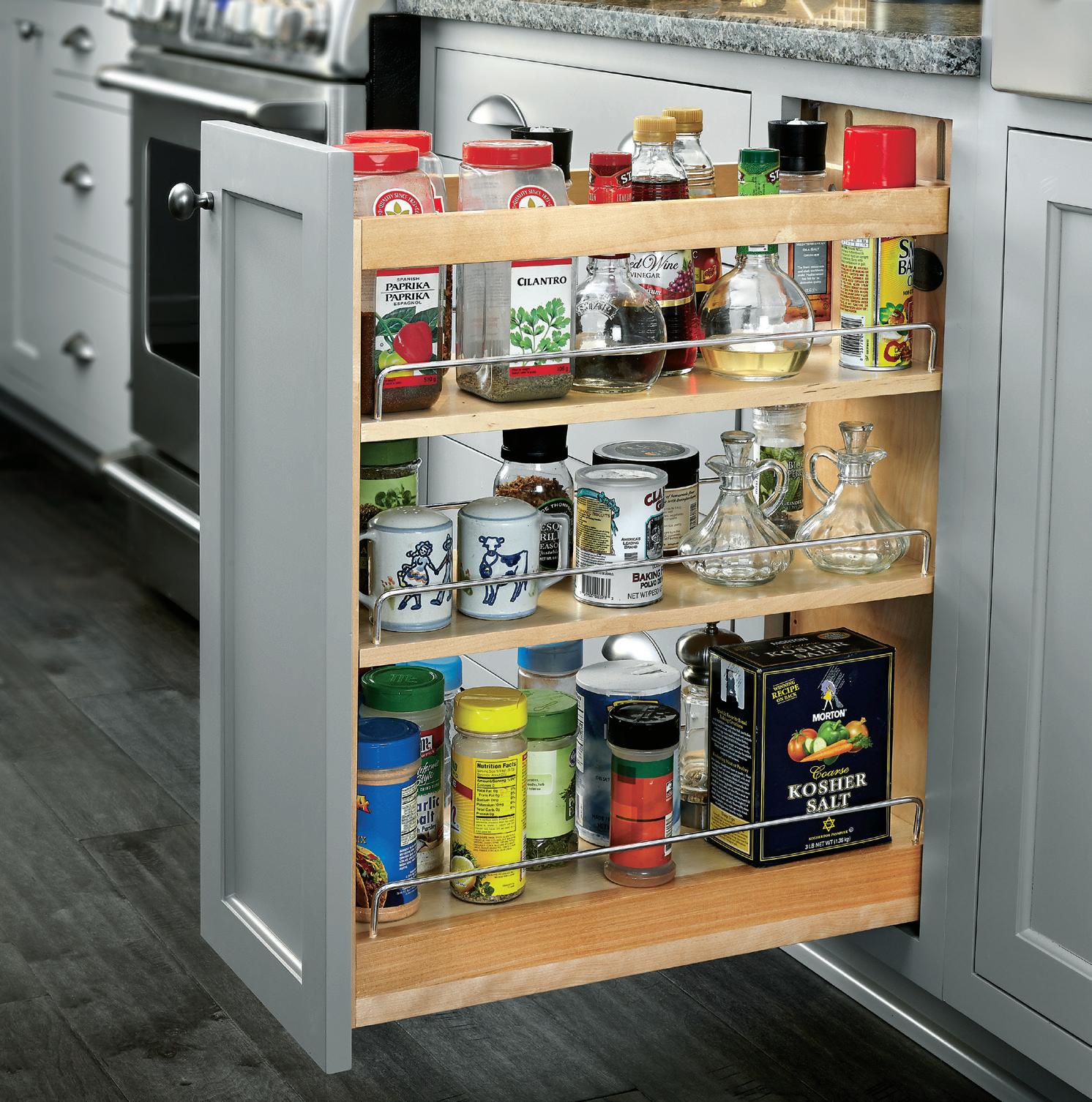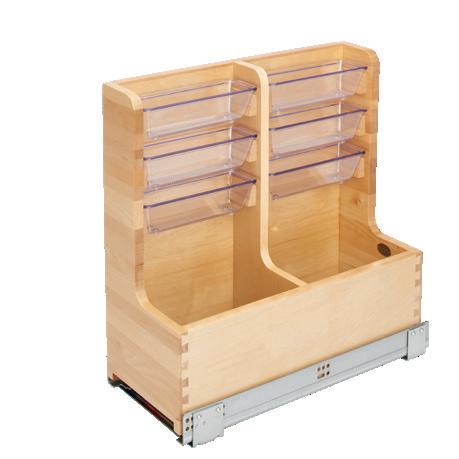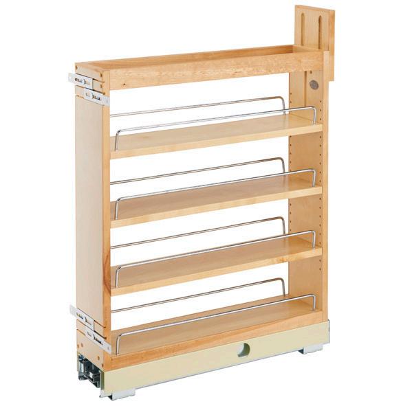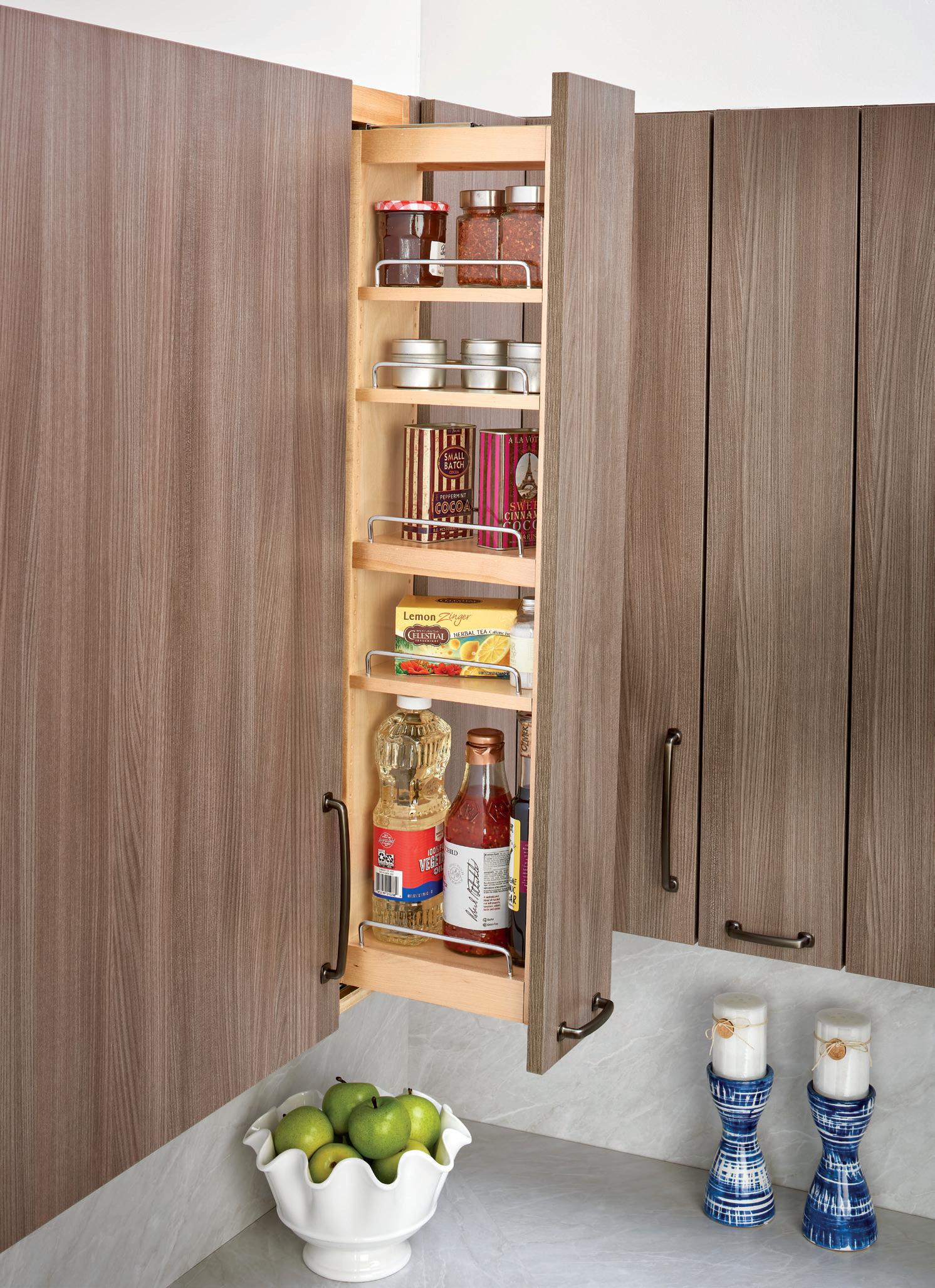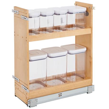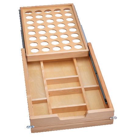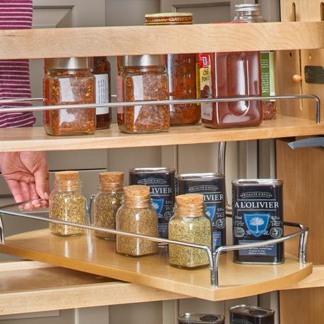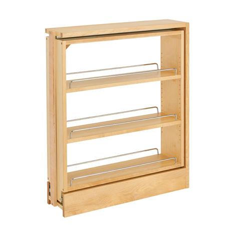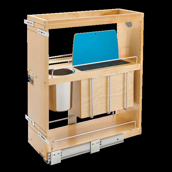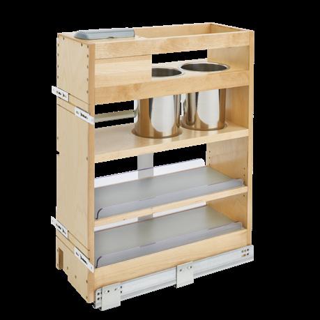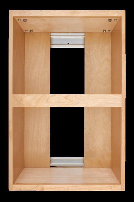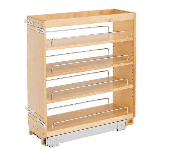 Now available in walnut or maple and designed for 9” and 12” base cabinets, it features a fixed top shelf