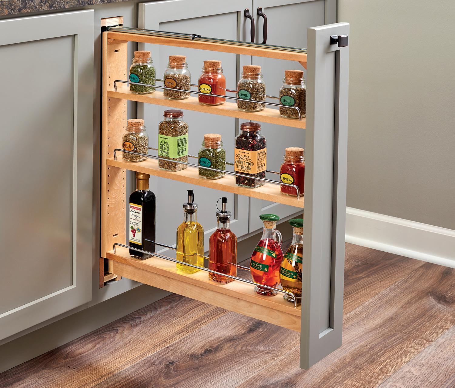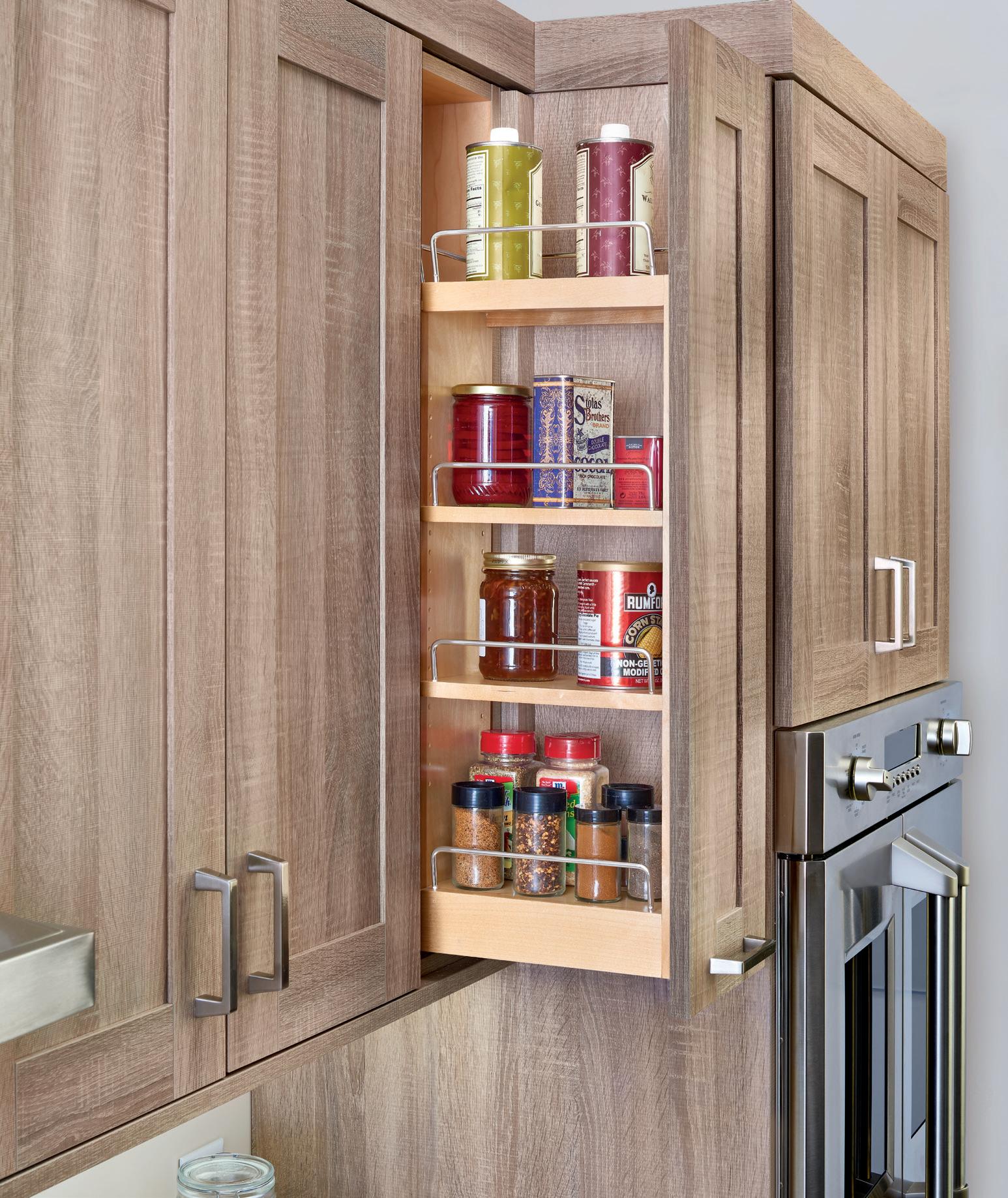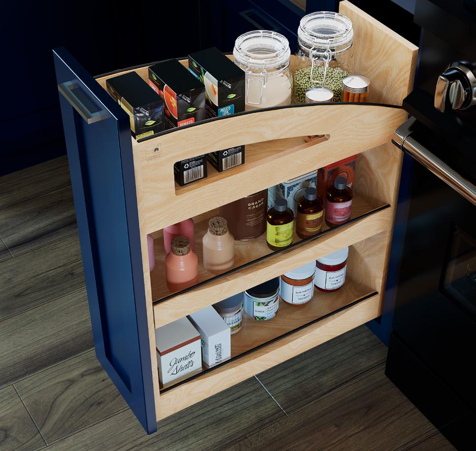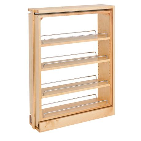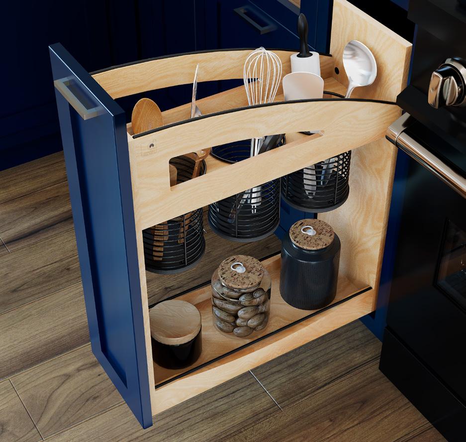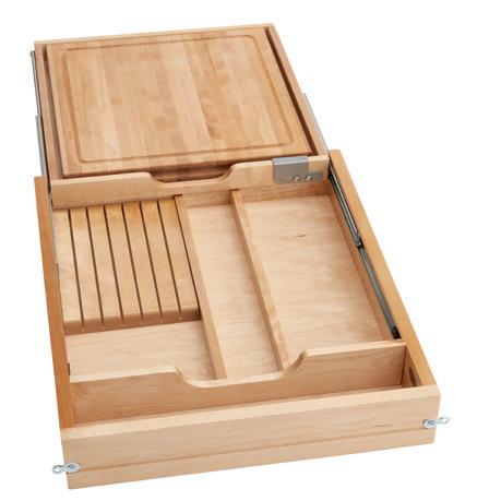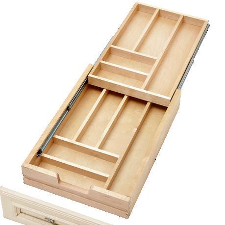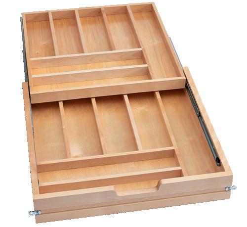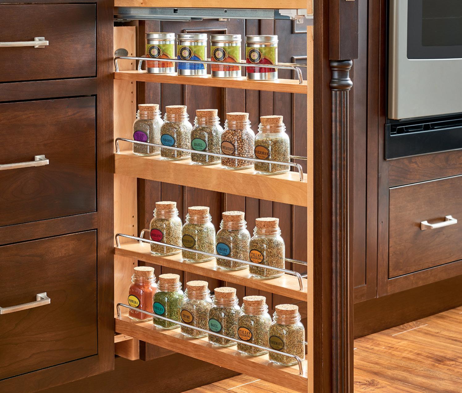 Now available in walnut or maple and designed for 9” and 12” base cabinets, it features a fixed top shelf