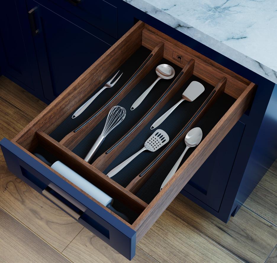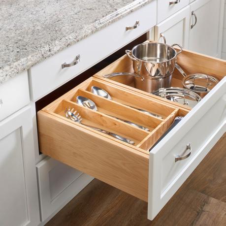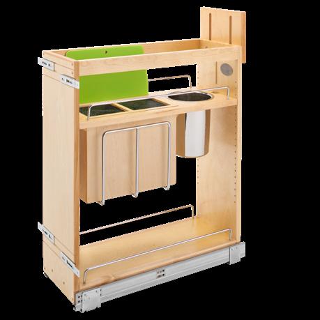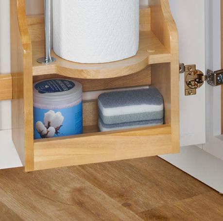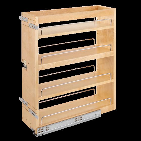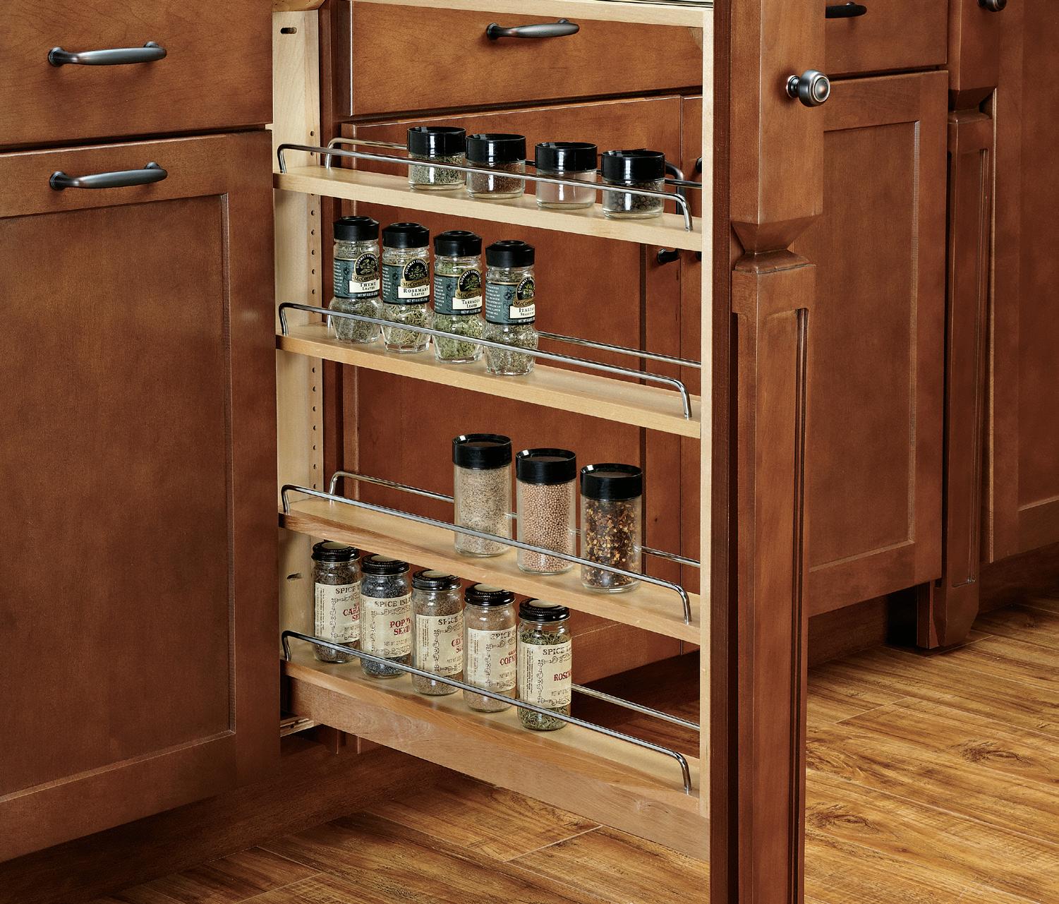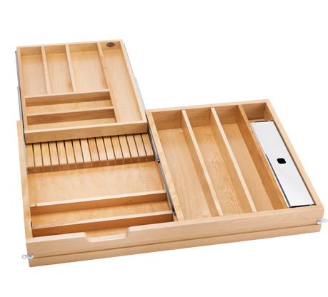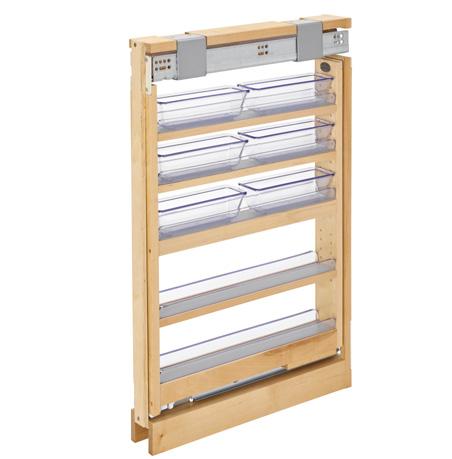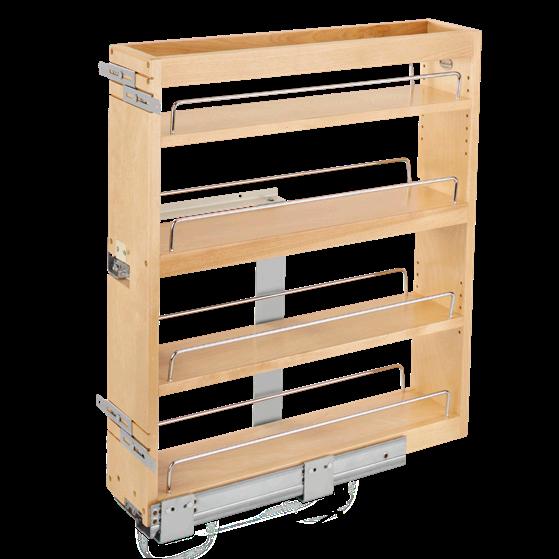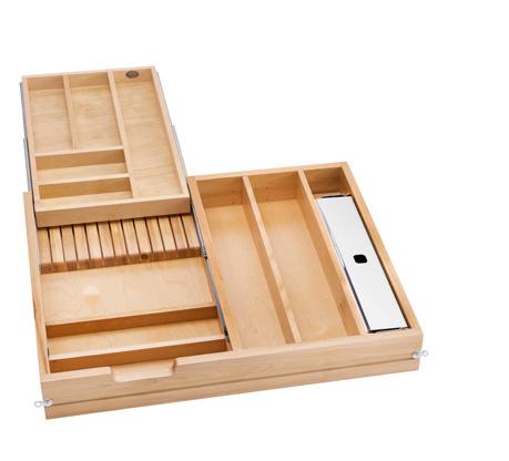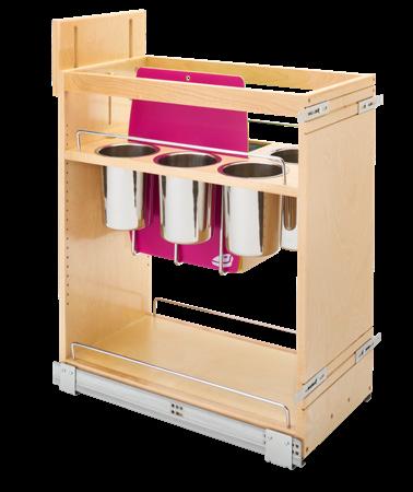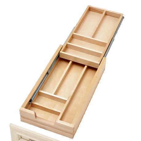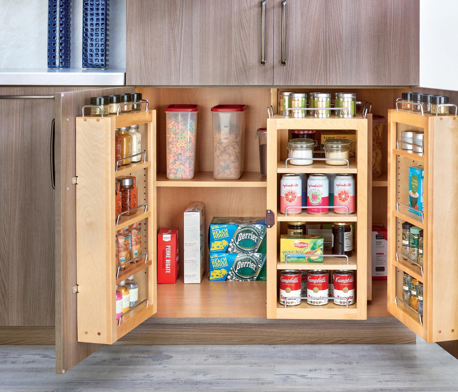 Now available in walnut or maple and designed for 9” and 12” base cabinets, it features a fixed top shelf