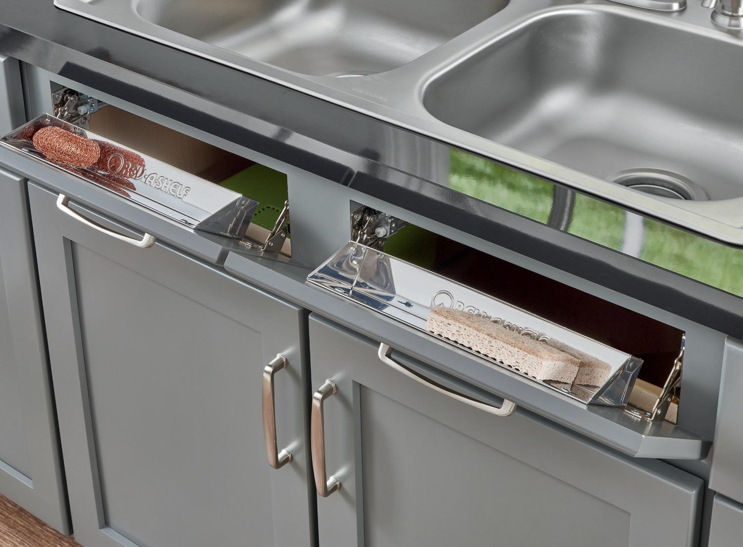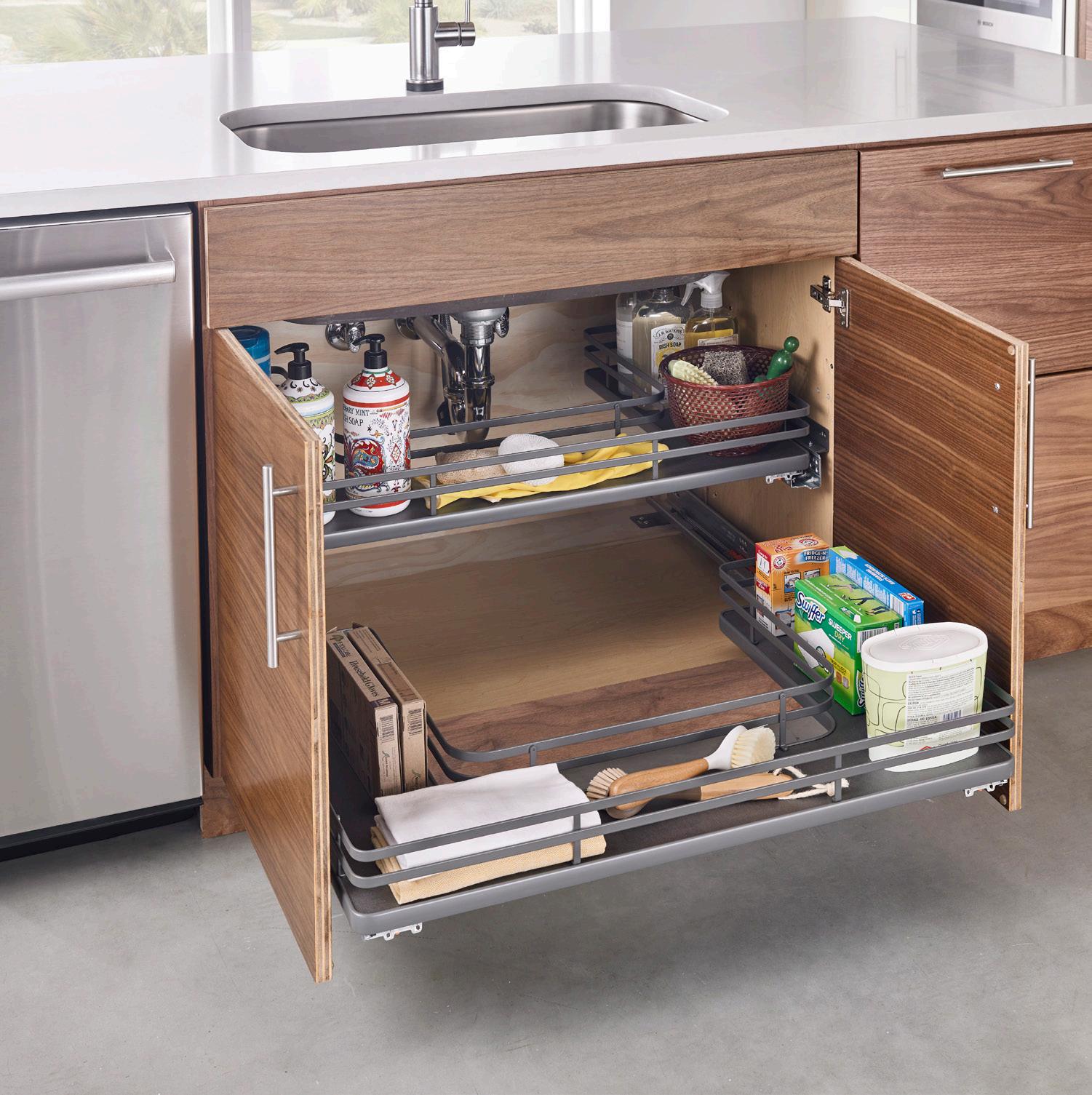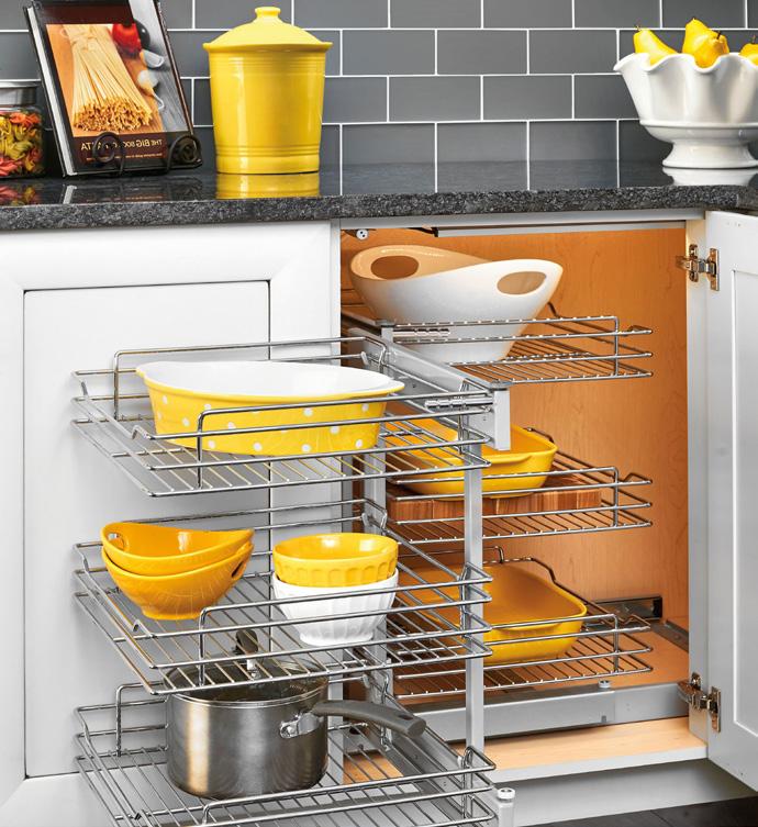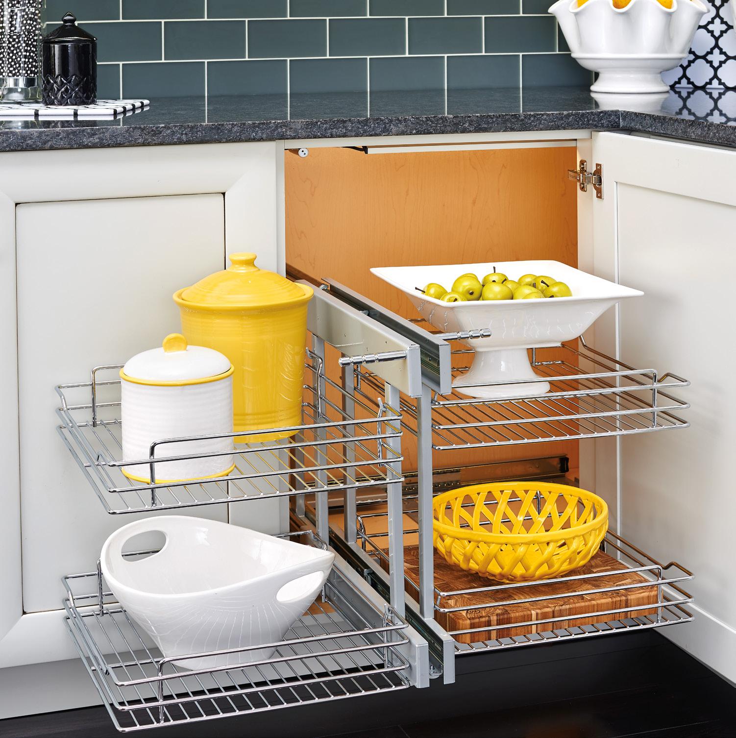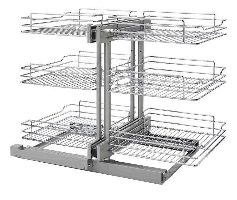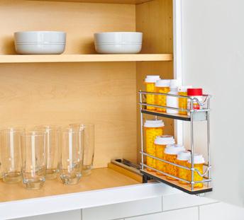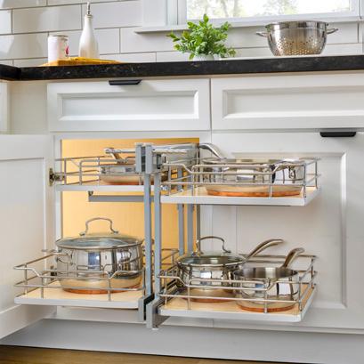 Our complete line of cabinet storage organizing accessories boast distinct advantages in strength, design, ease of installation and aesthetics that can only be sold effectively through working displays. Many of our customers experience great results by installing products in kitchen dealer, custom shops and home center kitchen and bath displays. We also have floor displays and salesman samples available that can further serve as effective tools.