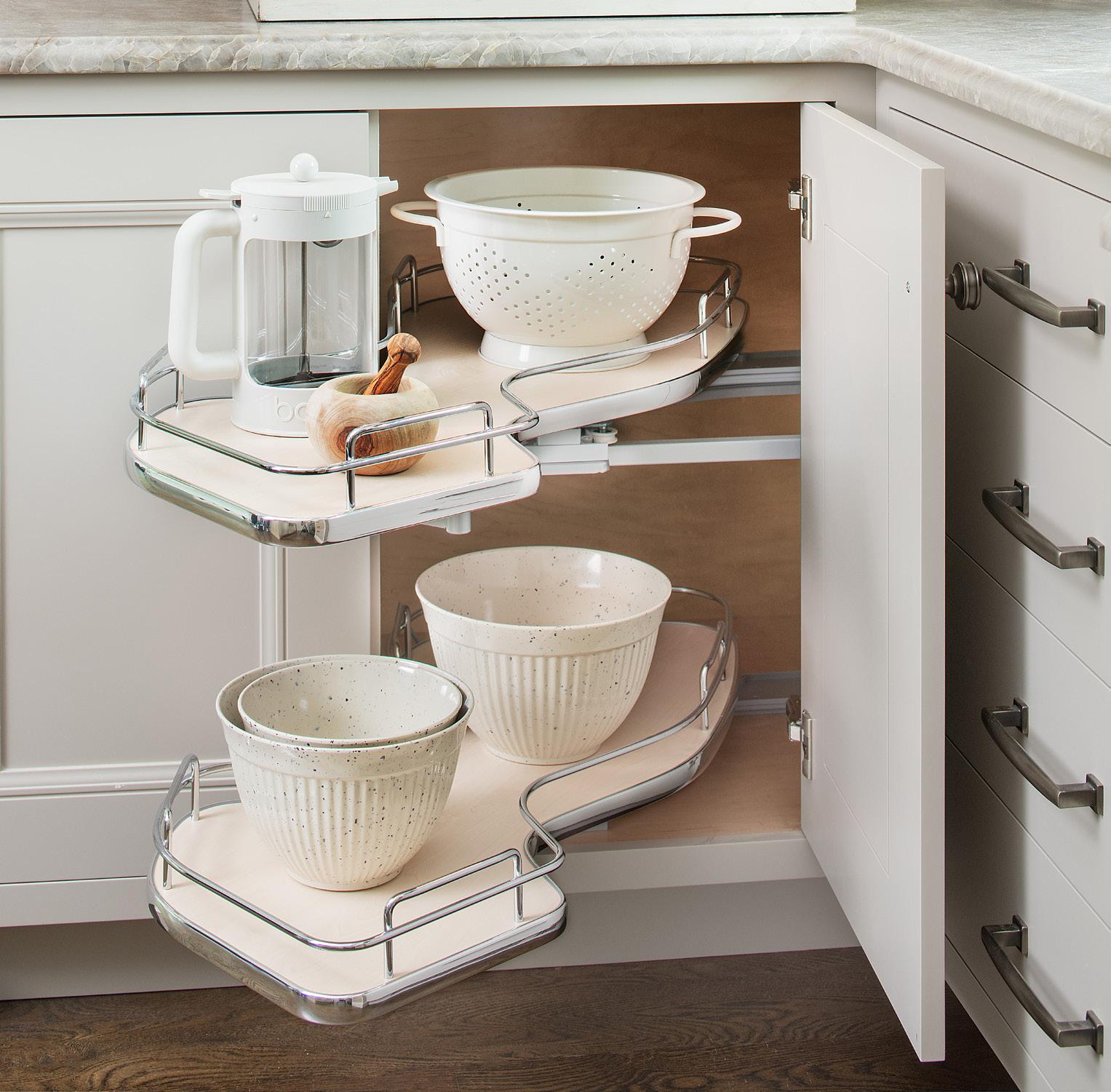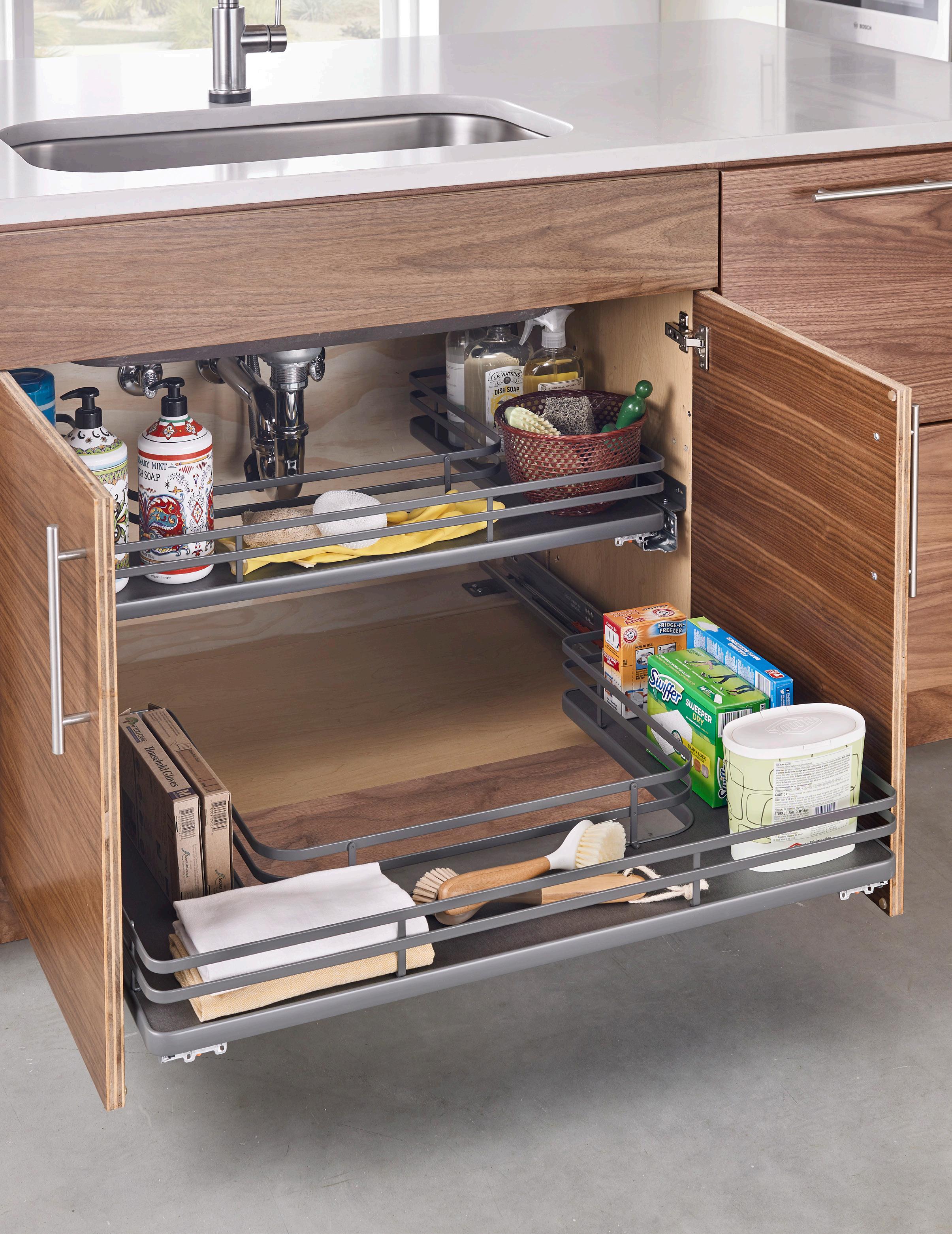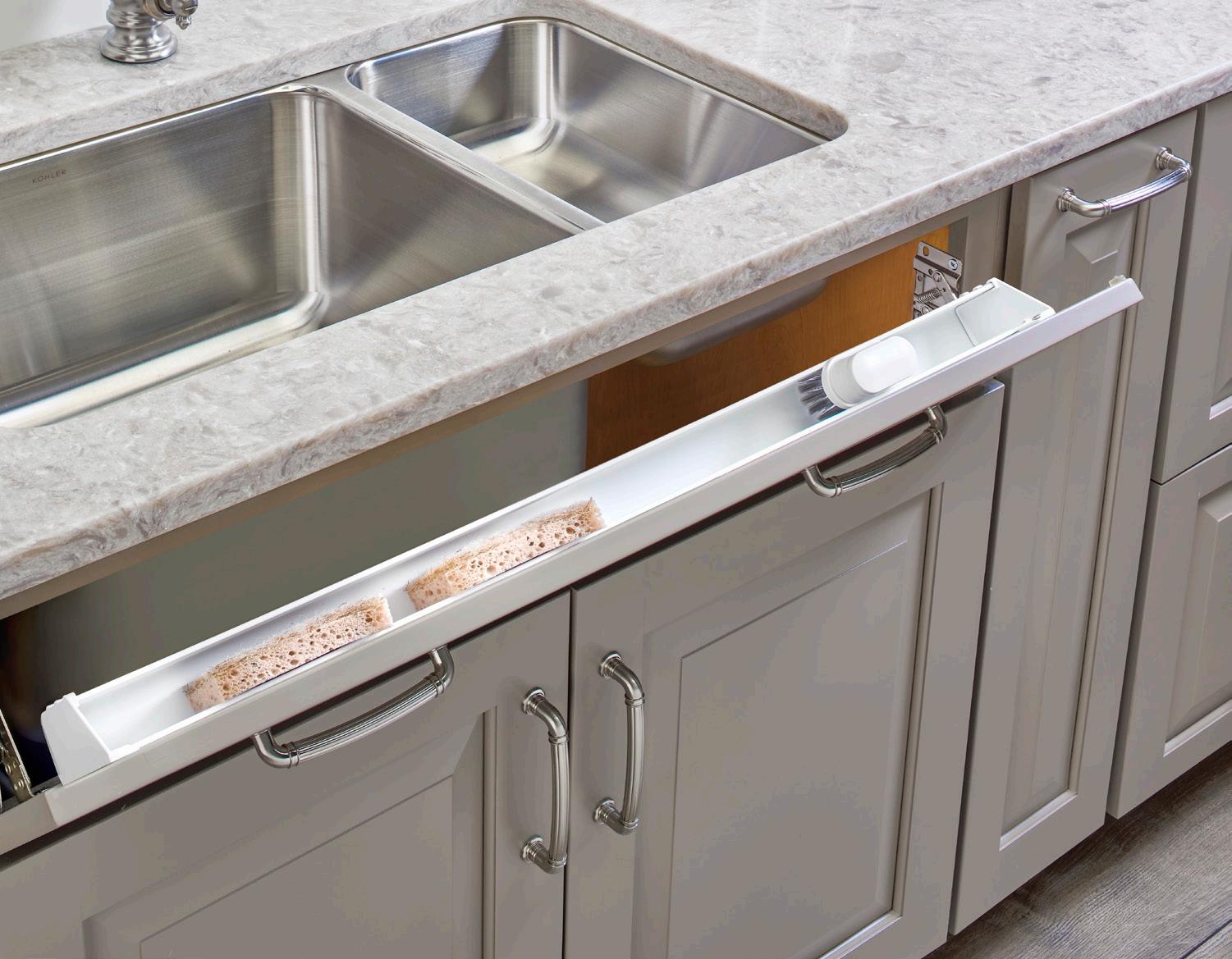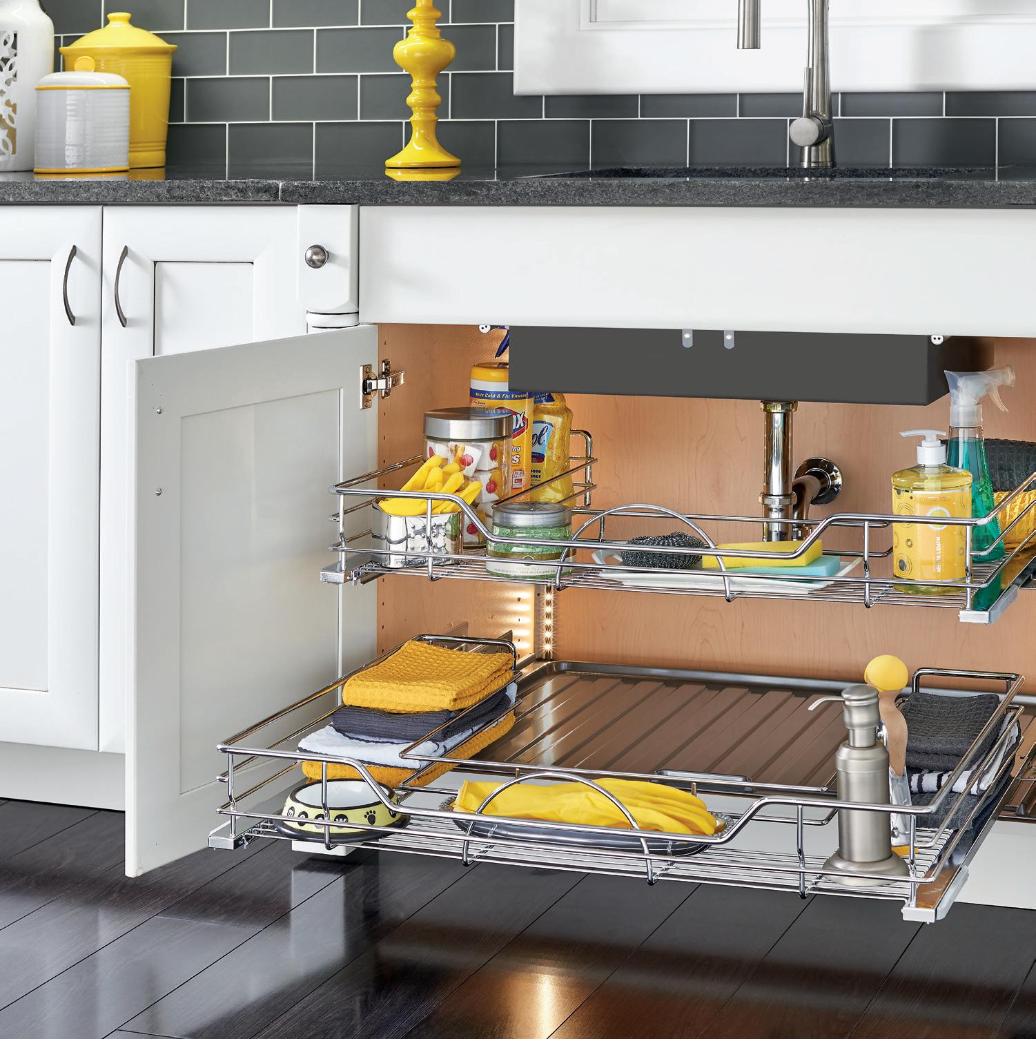 Our complete line of cabinet storage organizing accessories boast distinct advantages in strength, design, ease of installation and aesthetics that can only be sold effectively through working displays. Many of our customers experience great results by installing products in kitchen dealer, custom shops and home center kitchen and bath displays. We also have floor displays and salesman samples available that can further serve as effective tools.