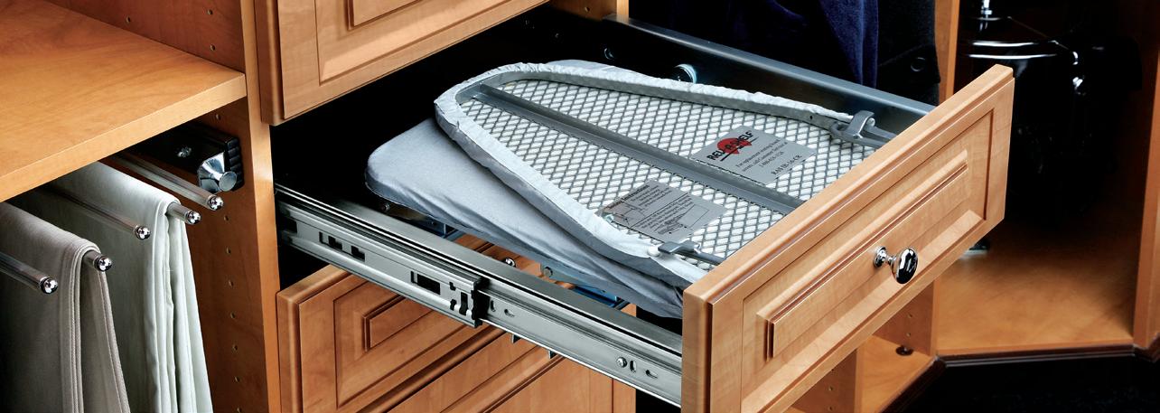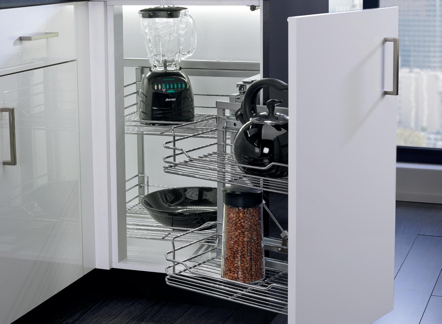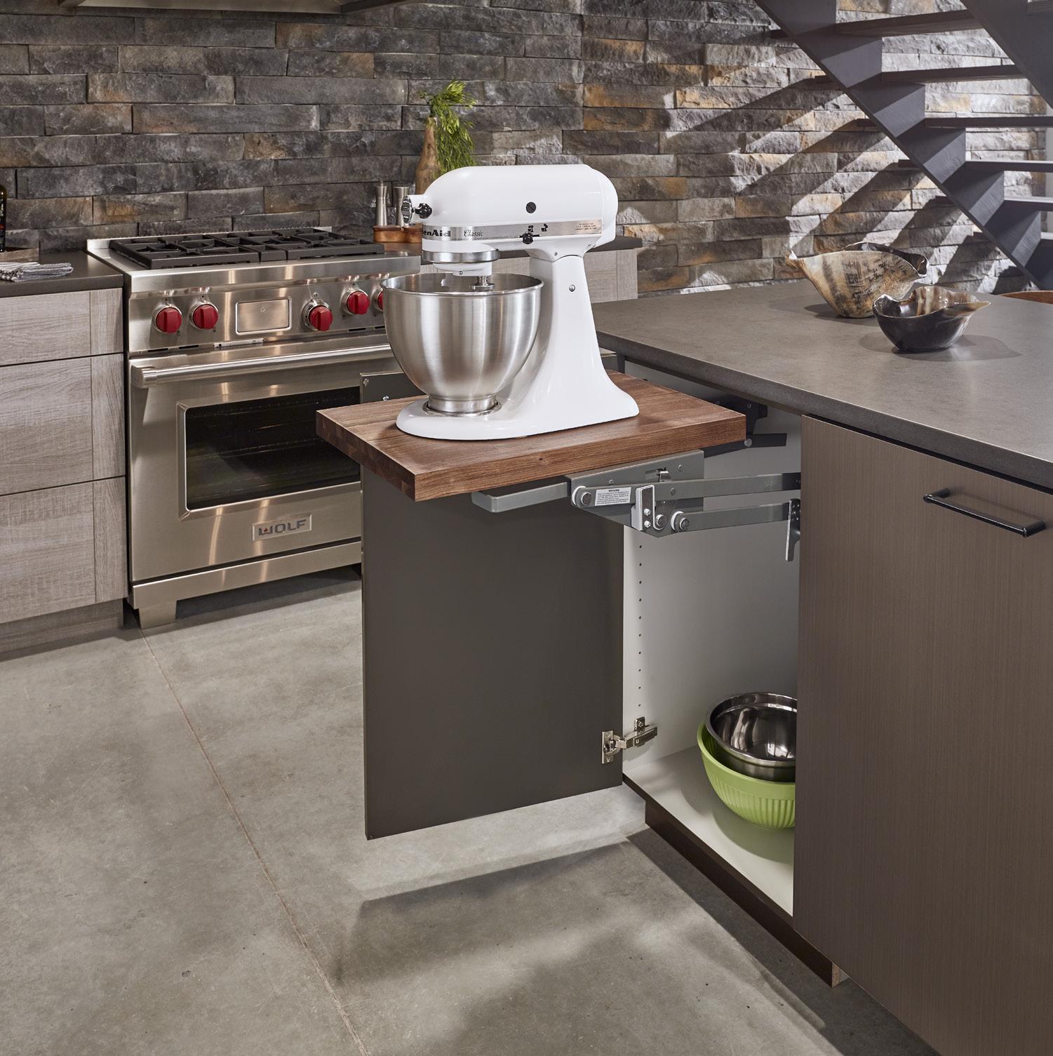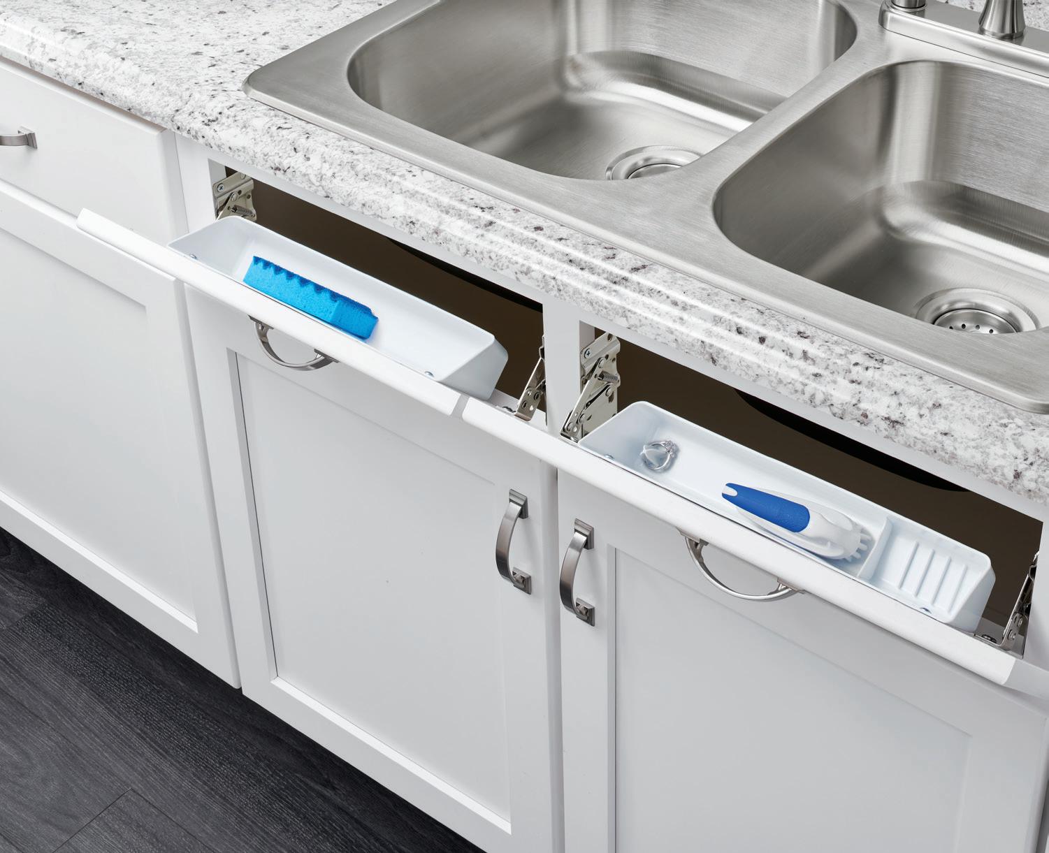Our complete line of cabinet storage organizing accessories boast distinct advantages in strength, design, ease of installation and aesthetics that can only be sold effectively through working displays. Many of our customers experience great results by installing products in kitchen dealer, custom shops and home center kitchen and bath displays. We also have floor displays and salesman samples available that can further serve as effective tools.