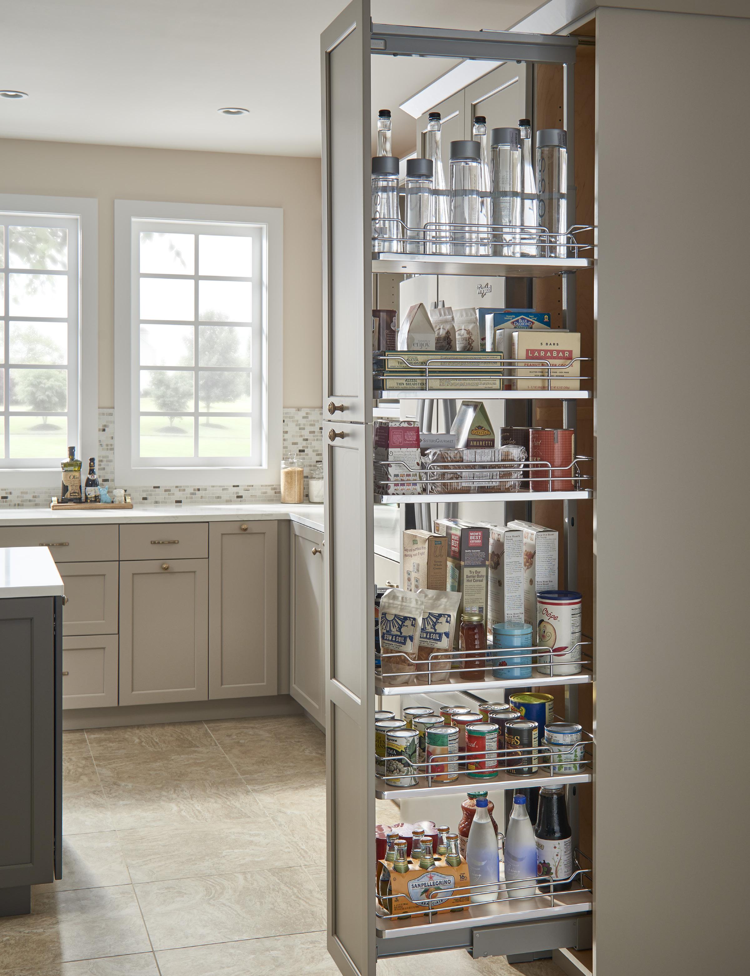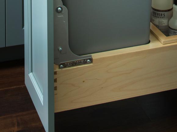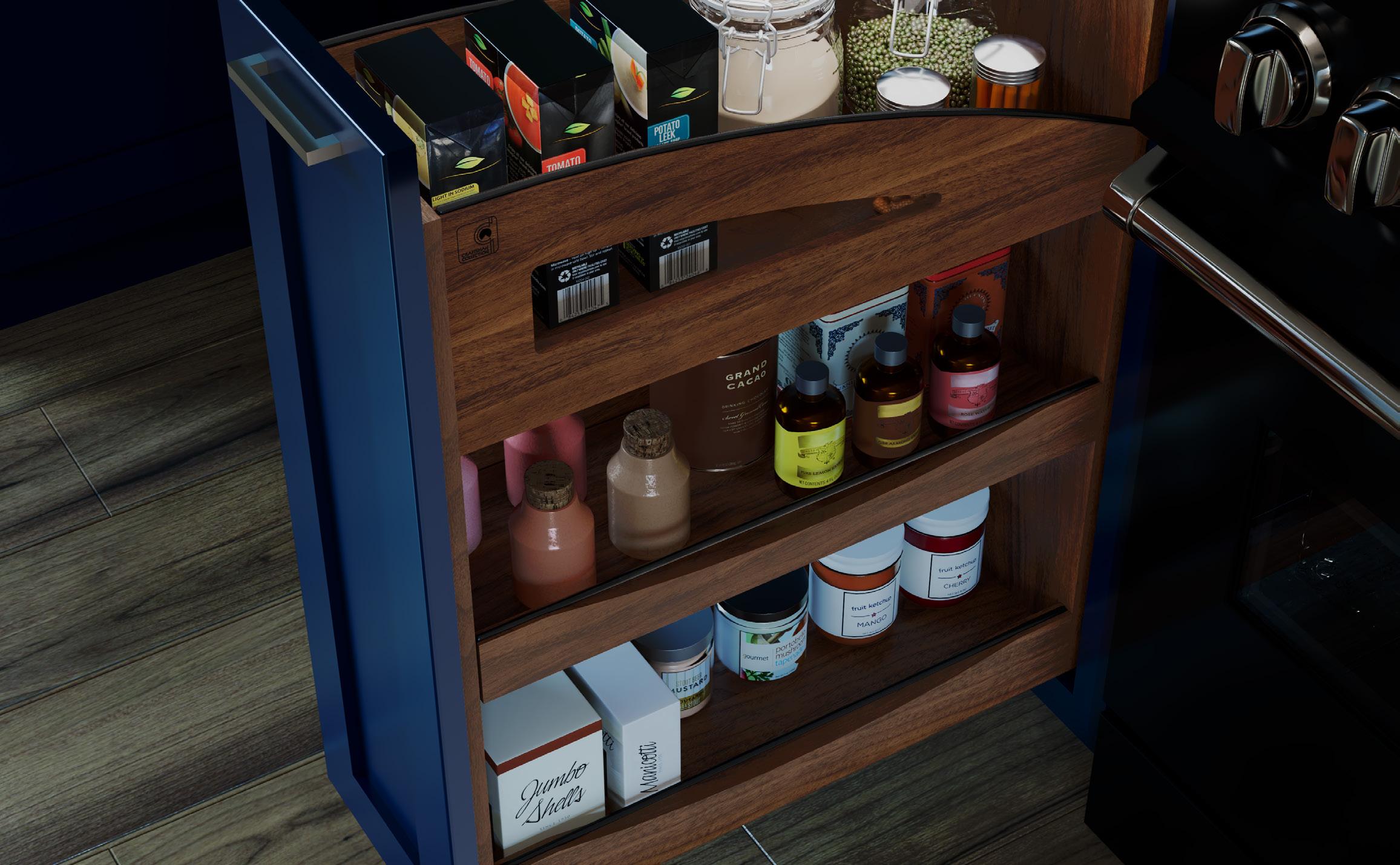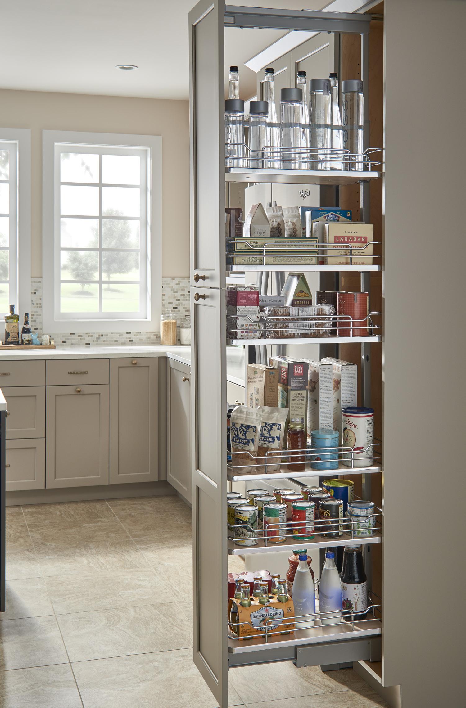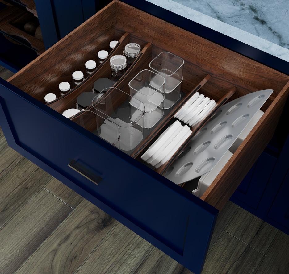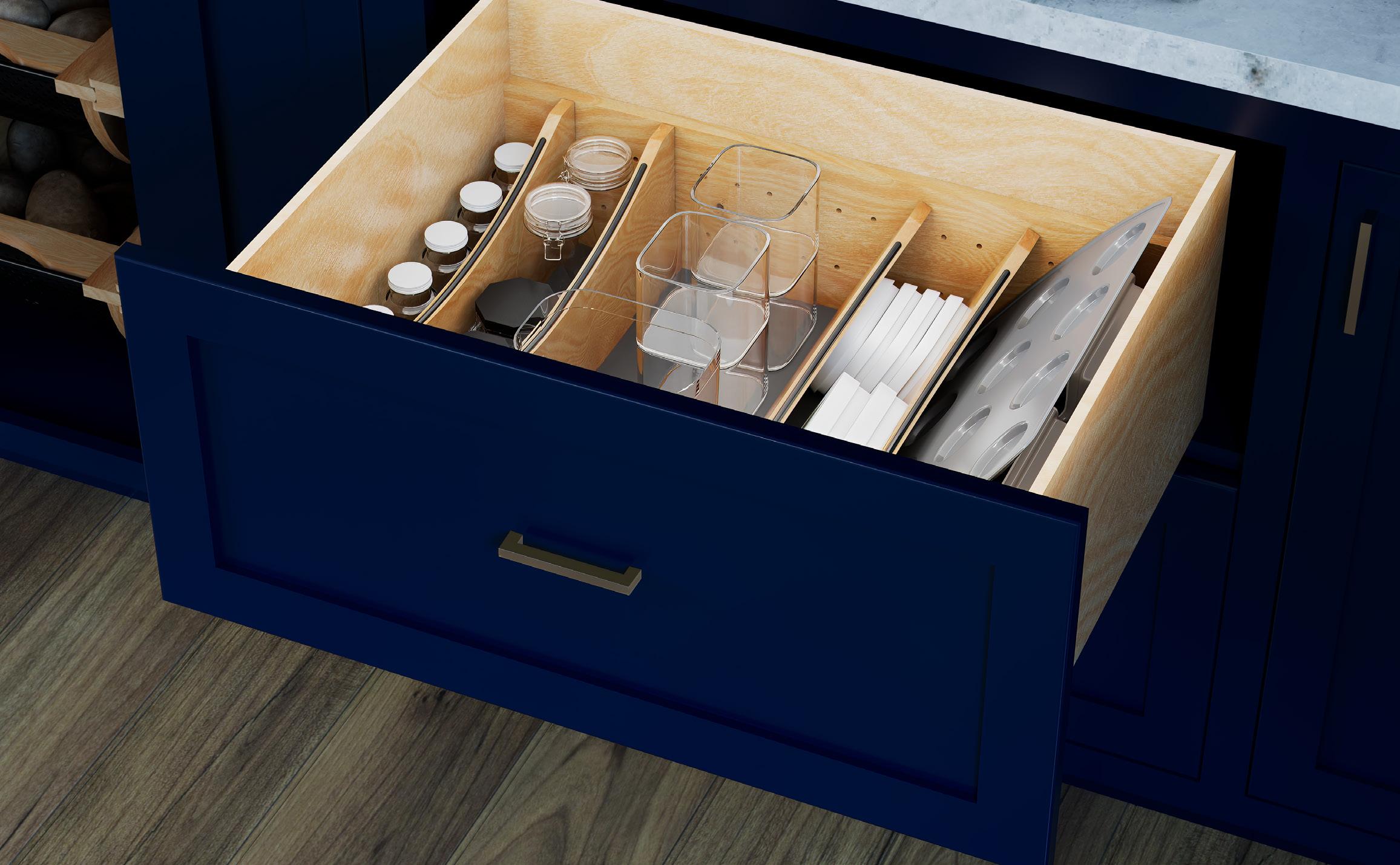 Complete with BLUM MOVENTO soft-close slides and patented door-mount brackets (US Patent No. 8,388,076), this innovative pullout organizer brings timeless craftsmanship with a modern touch and easy organization to your kitchen.