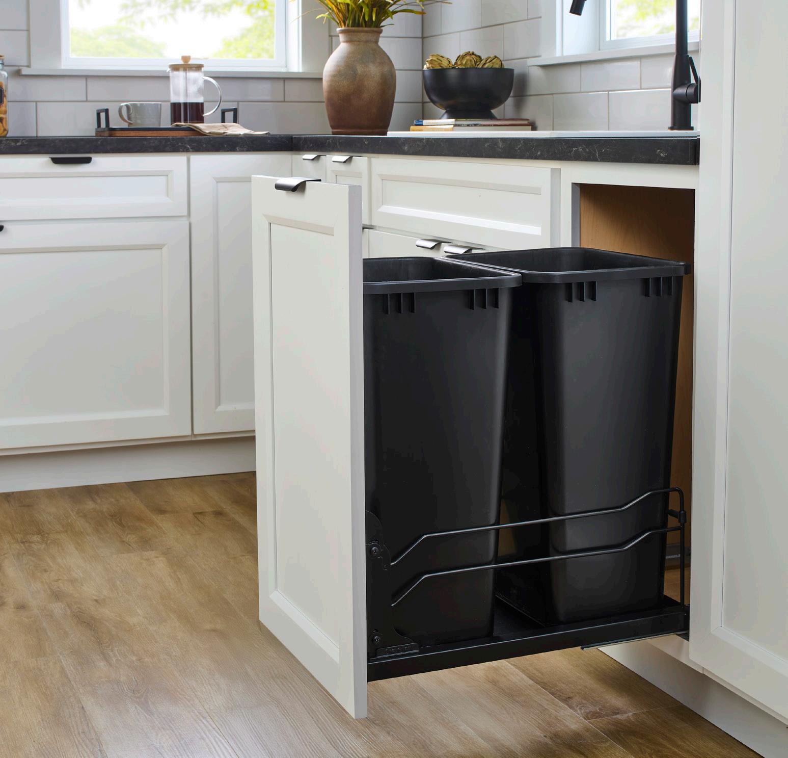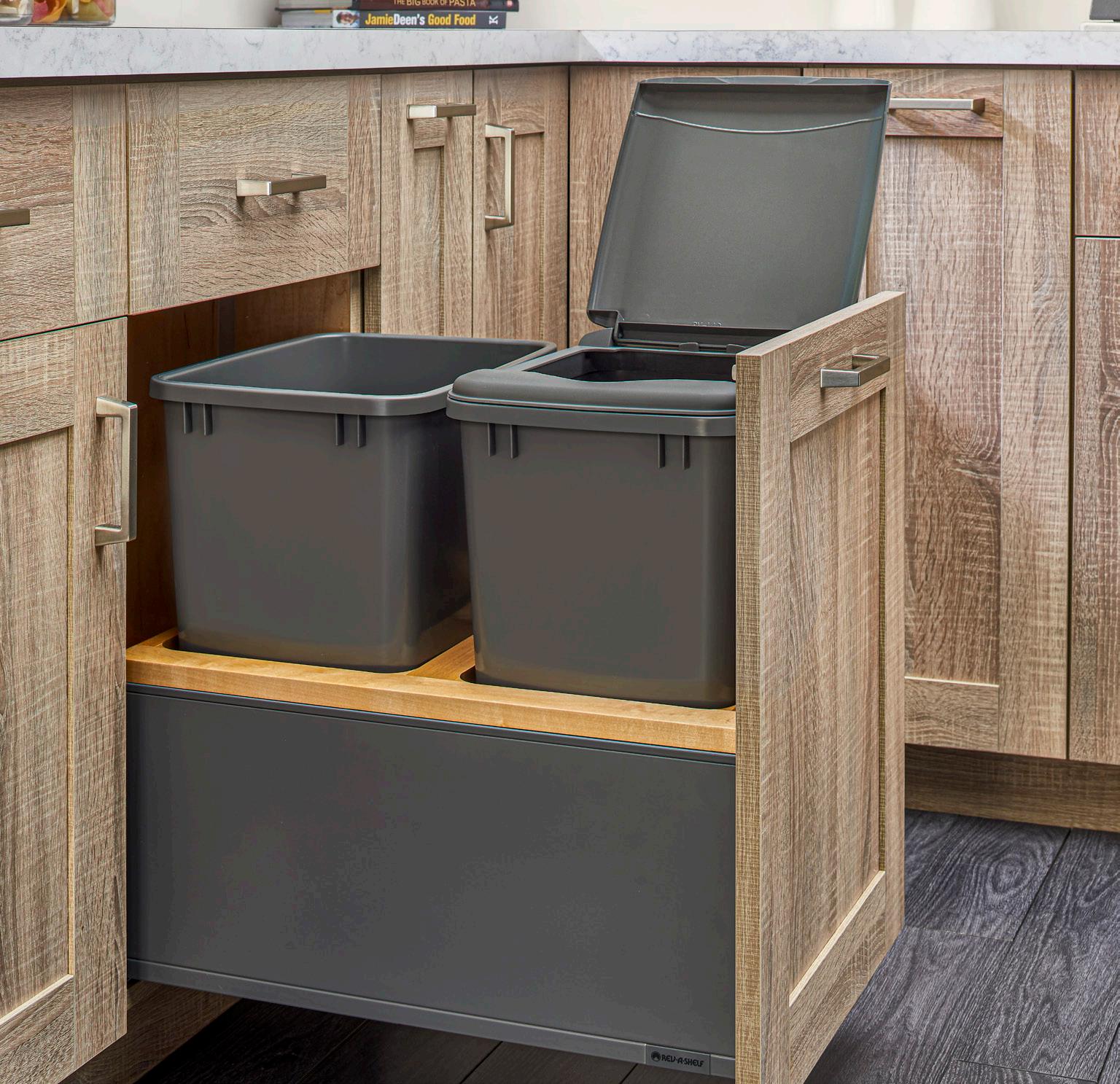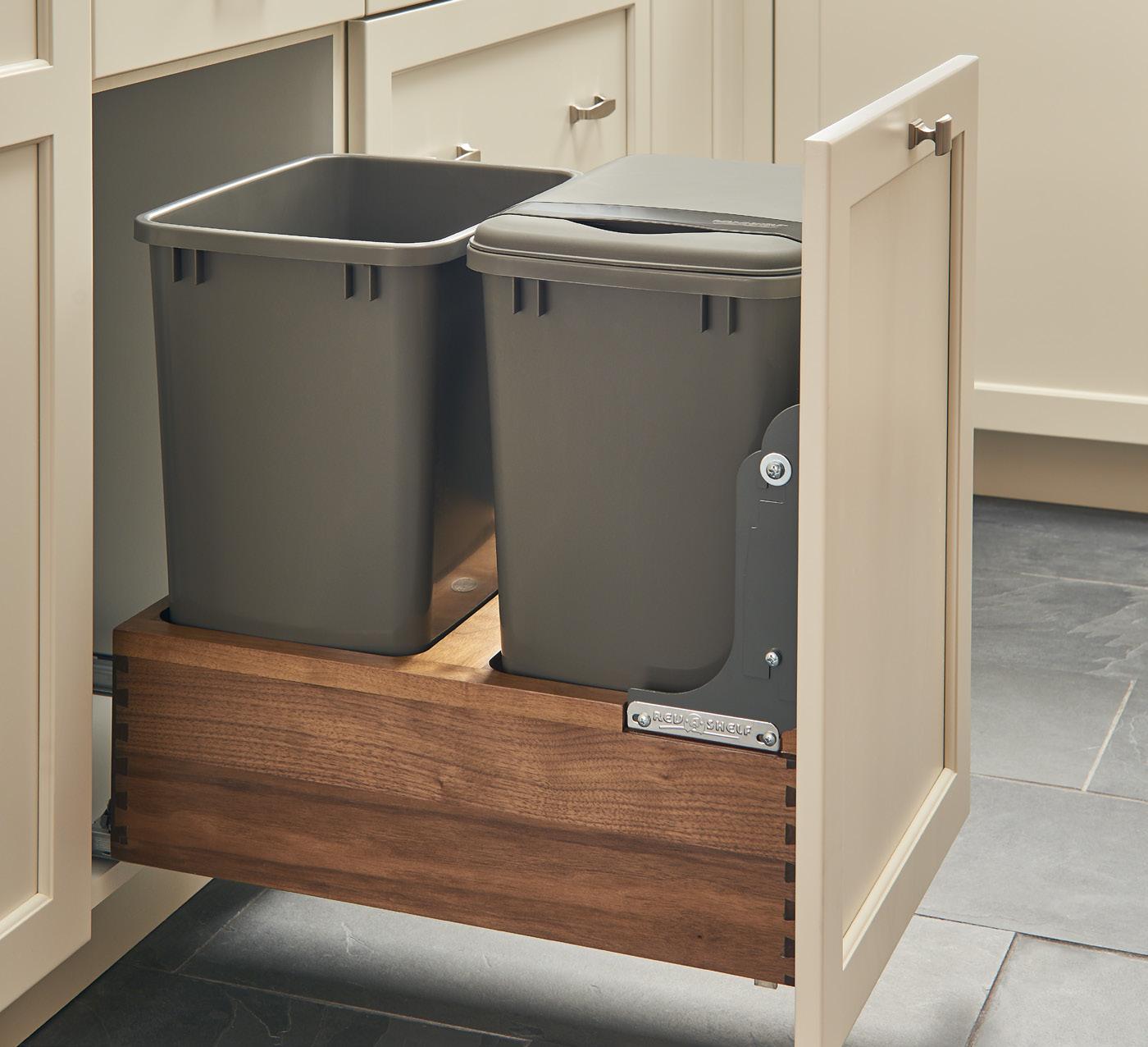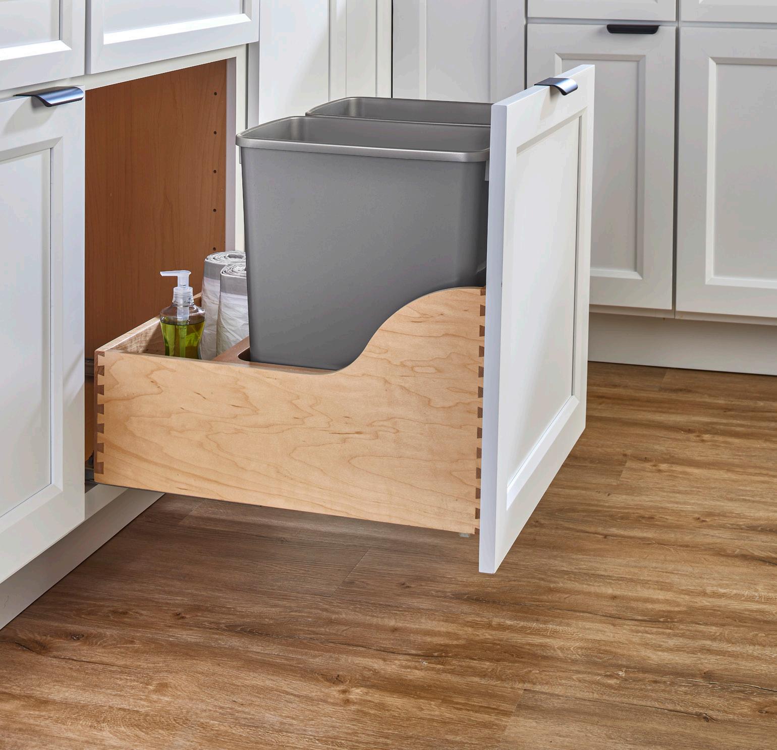 Stash your trash in luxurious style with the 4WCCC Series Craftsman Collection Bottom Mount Waste Container from Rev - A - Shelf ® ! This one-of-a-kind pullout waste container features the same solid wood construction, recessed wire black accents, and a stunning design with furnituregrade soft edges that is cohesive throughout our entire Craftsman Collection.