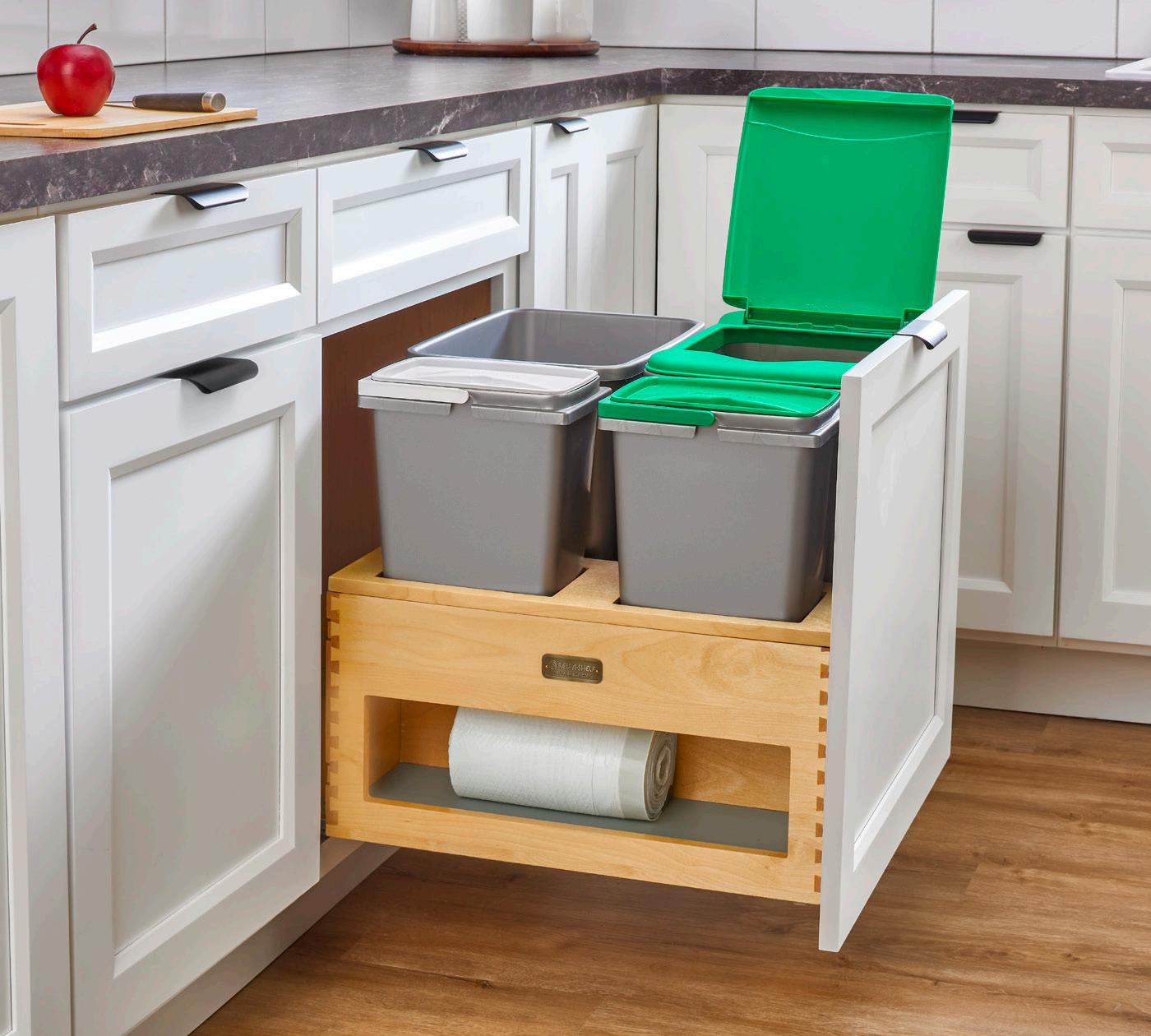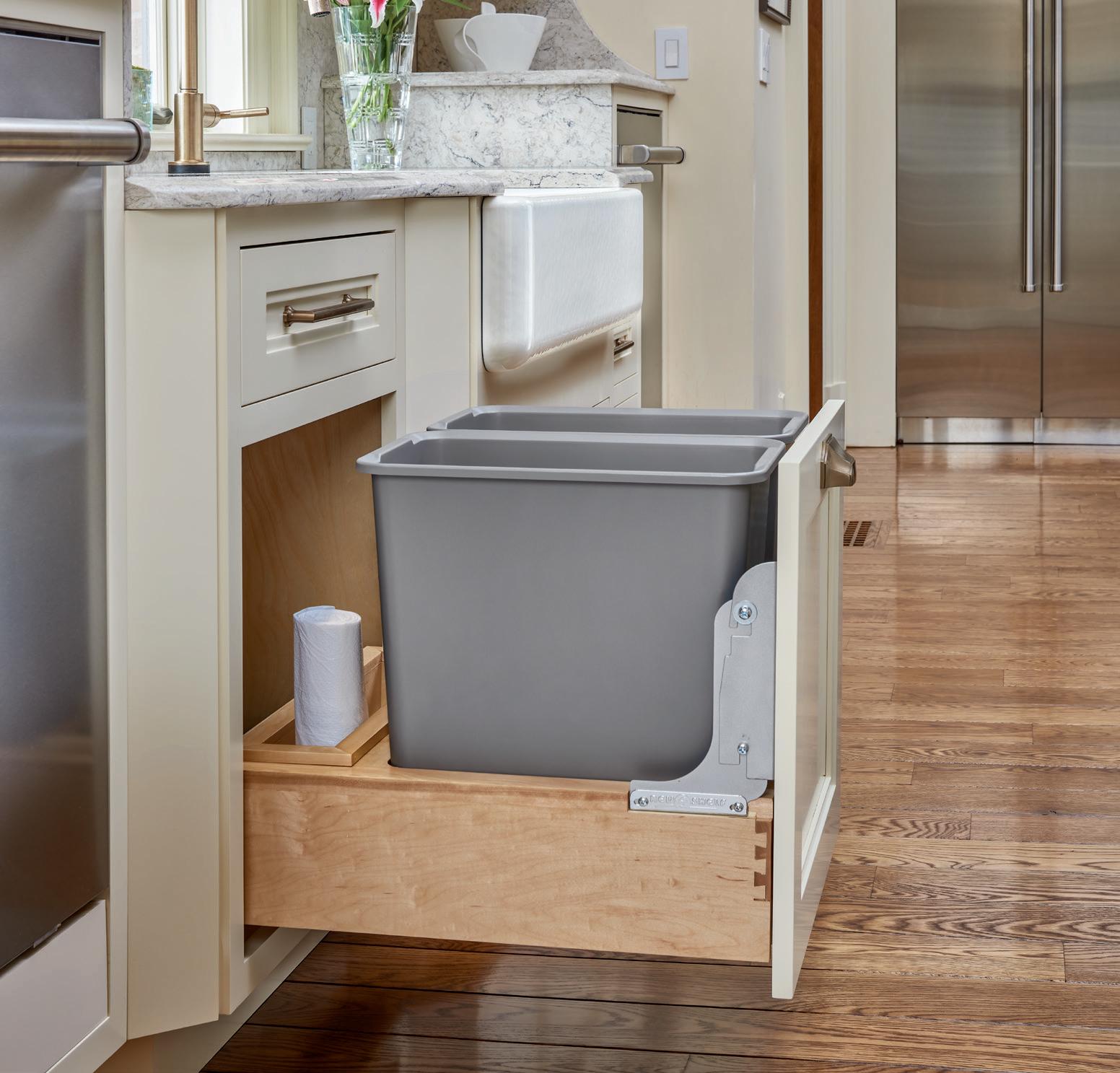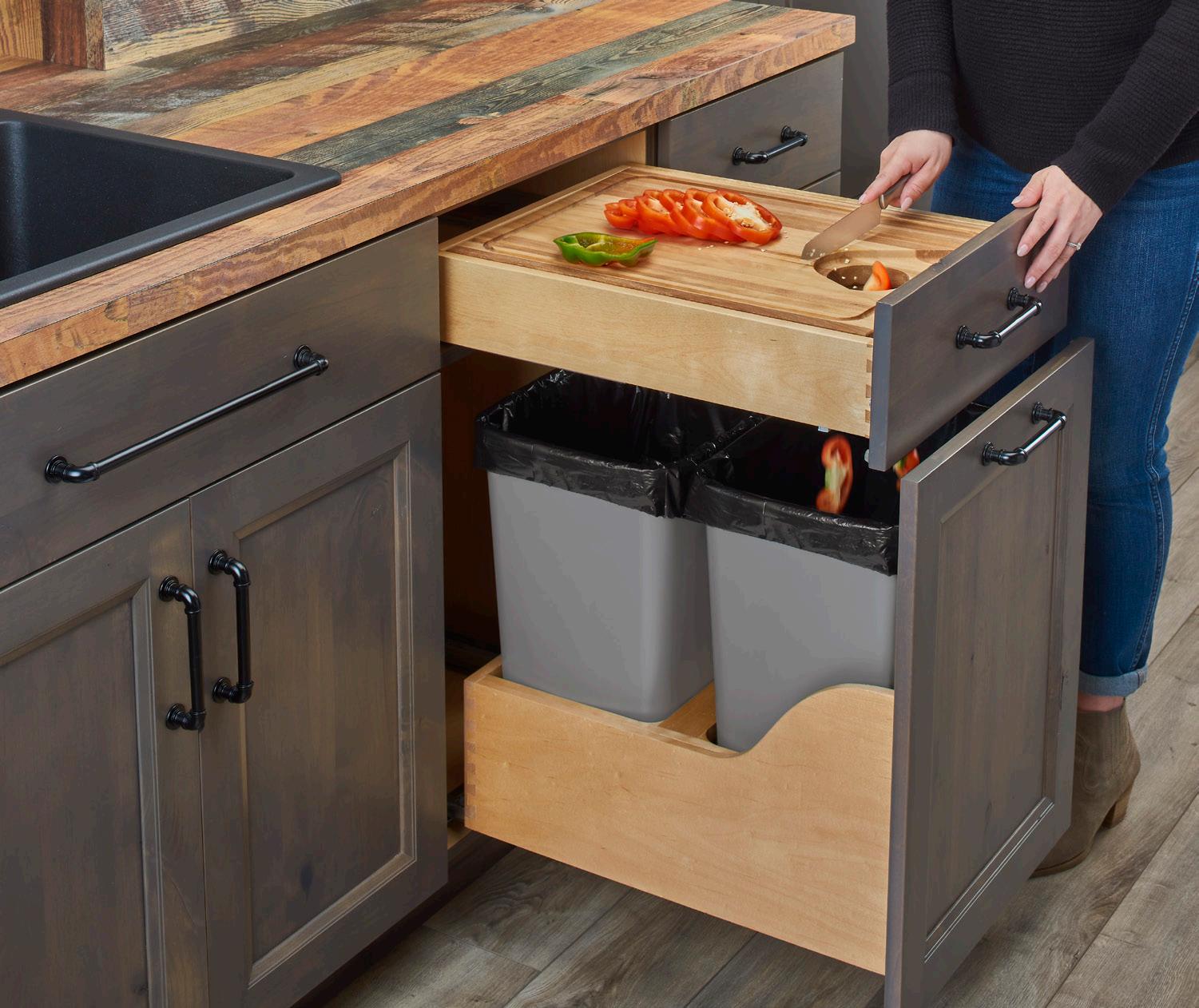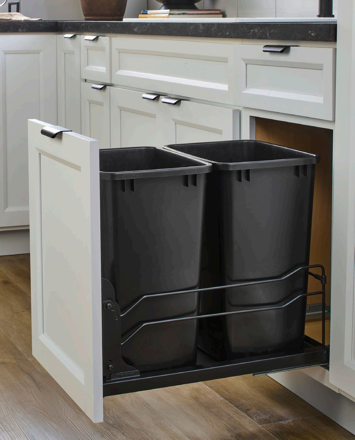 Stash your trash in luxurious style with the 4WCCC Series Craftsman Collection Bottom Mount Waste Container from Rev - A - Shelf ® ! This one-of-a-kind pullout waste container features the same solid wood construction, recessed wire black accents, and a stunning design with furnituregrade soft edges that is cohesive throughout our entire Craftsman Collection.