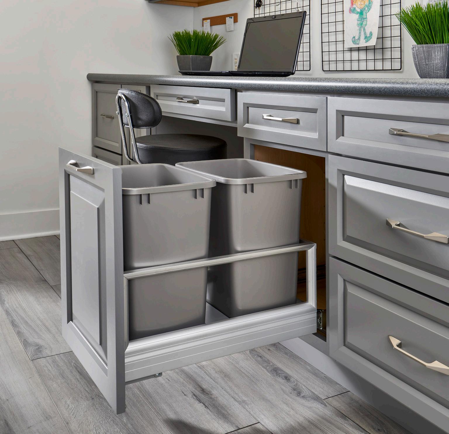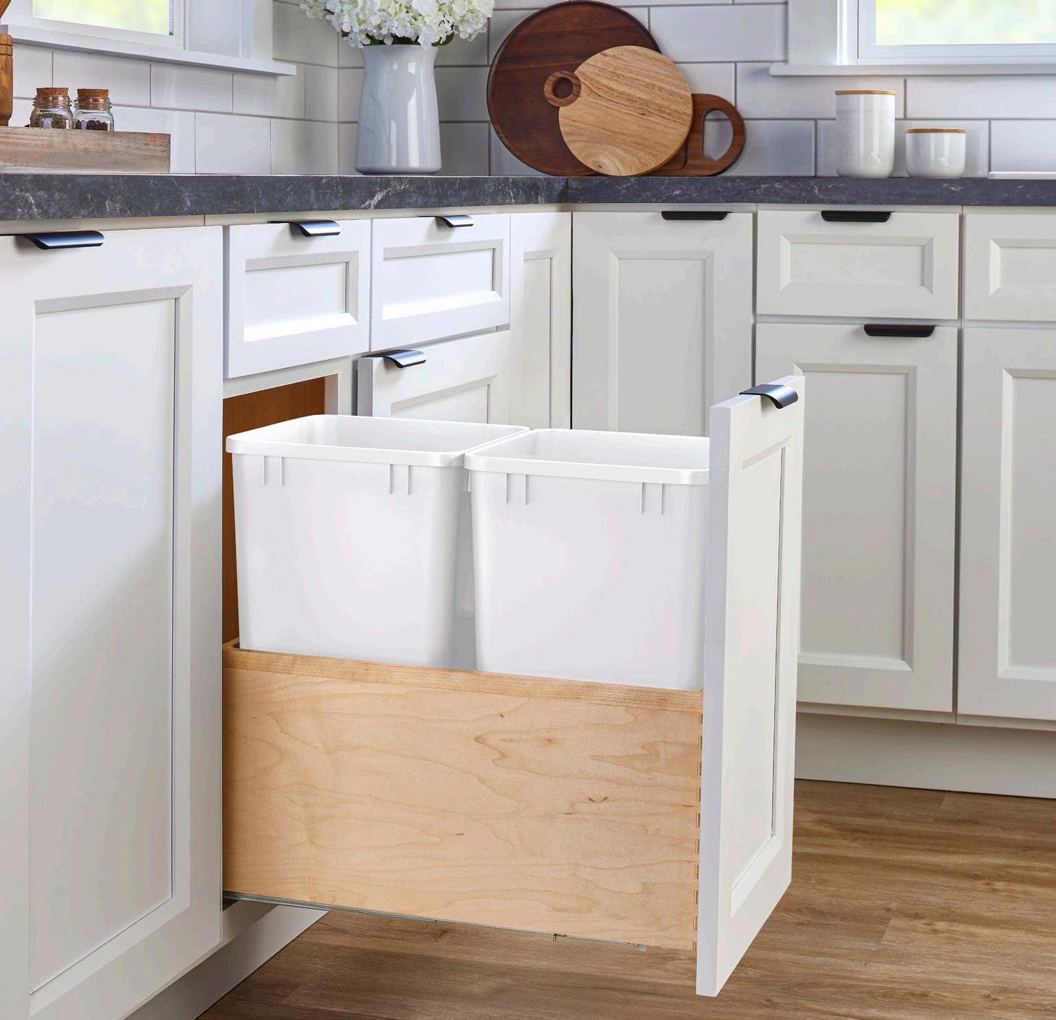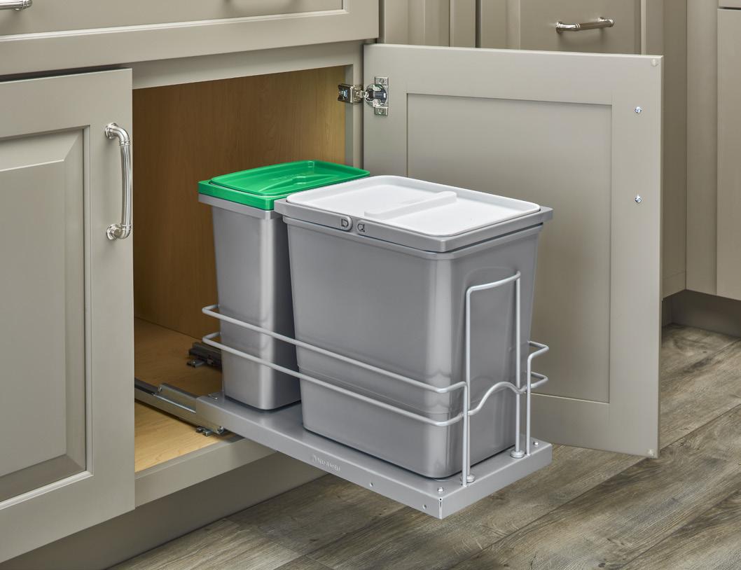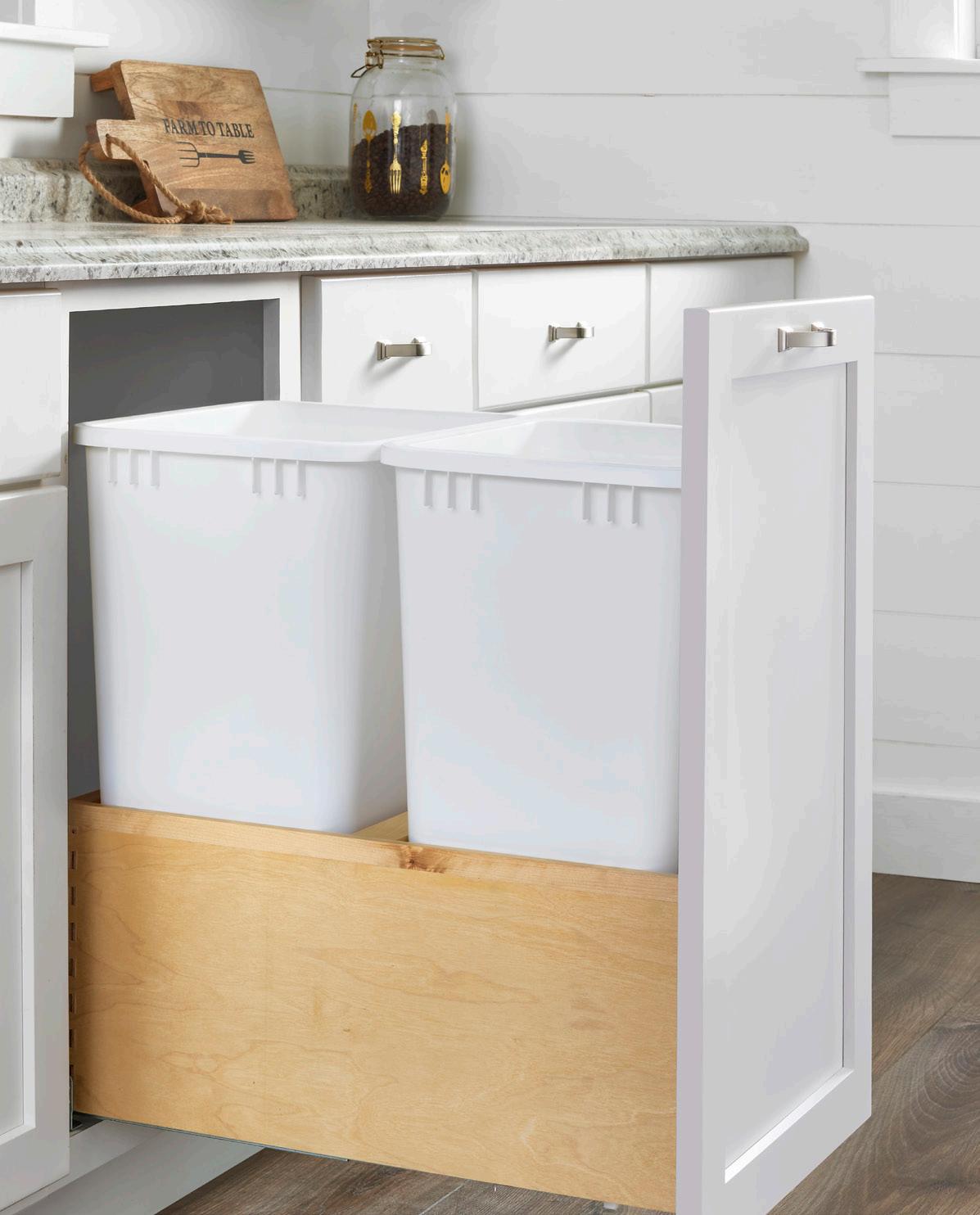 Stash your trash in luxurious style with the 4WCCC Series Craftsman Collection Bottom Mount Waste Container from Rev - A - Shelf ® ! This one-of-a-kind pullout waste container features the same solid wood construction, recessed wire black accents, and a stunning design with furnituregrade soft edges that is cohesive throughout our entire Craftsman Collection.