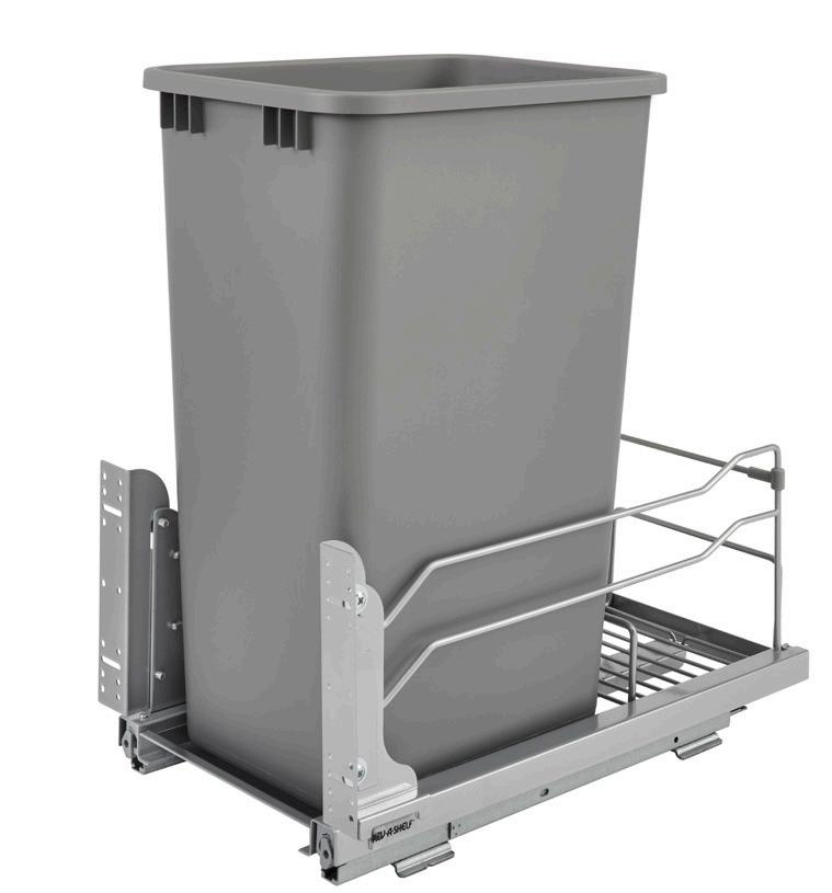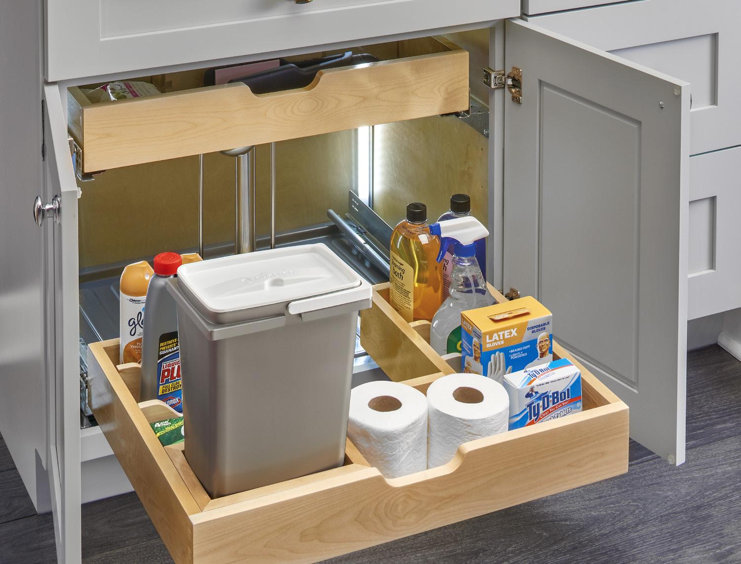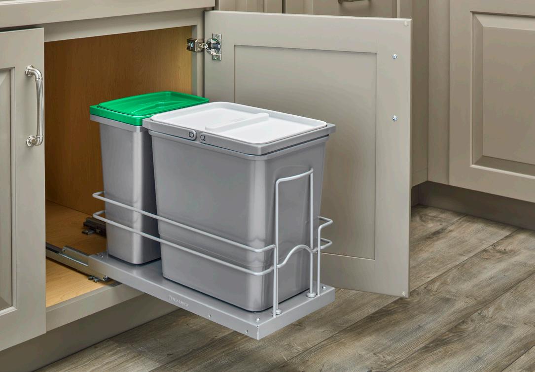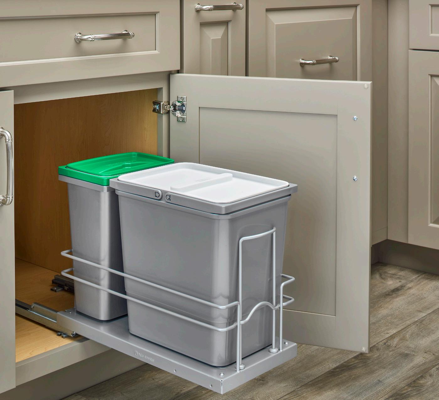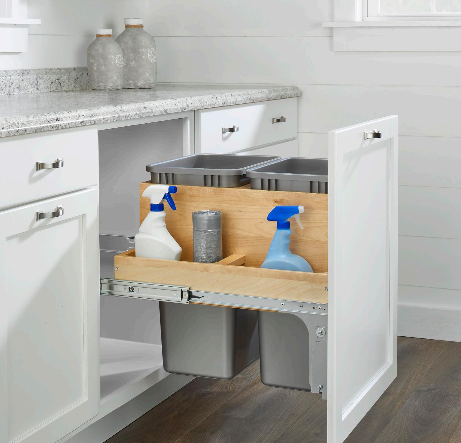 Stash your trash in luxurious style with the 4WCCC Series Craftsman Collection Bottom Mount Waste Container from Rev - A - Shelf ® ! This one-of-a-kind pullout waste container features the same solid wood construction, recessed wire black accents, and a stunning design with furnituregrade soft edges that is cohesive throughout our entire Craftsman Collection.
