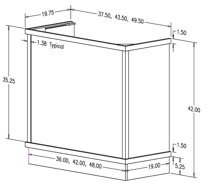 Note: unless otherwise noted, typical cabinet recommendations are based upon 1-1/2” face frame cabinet construction.