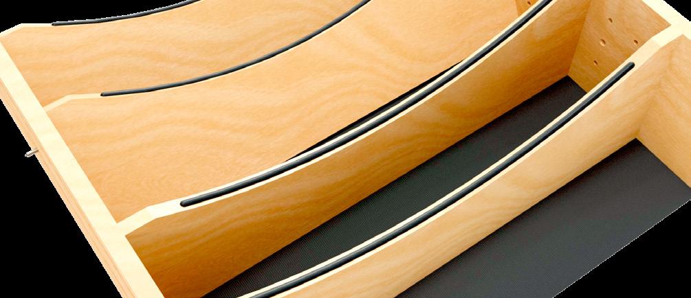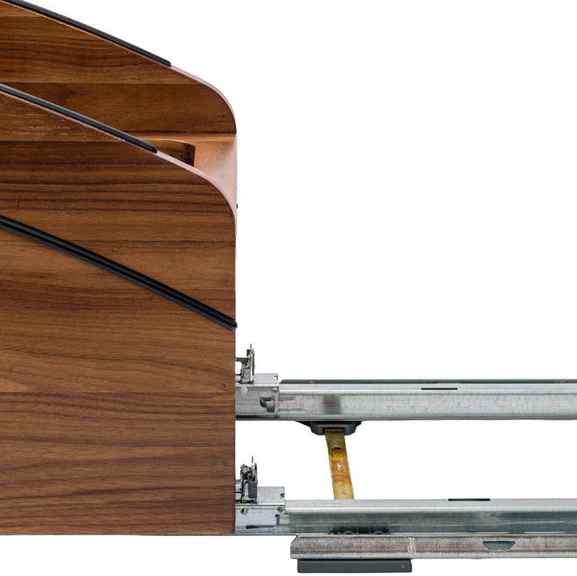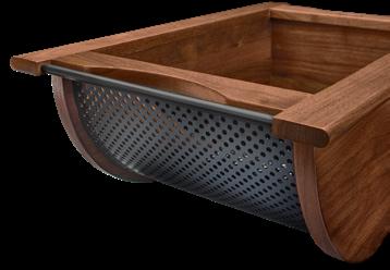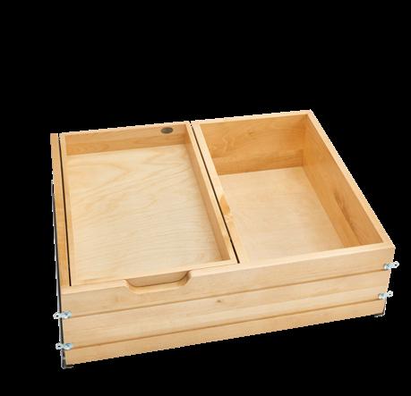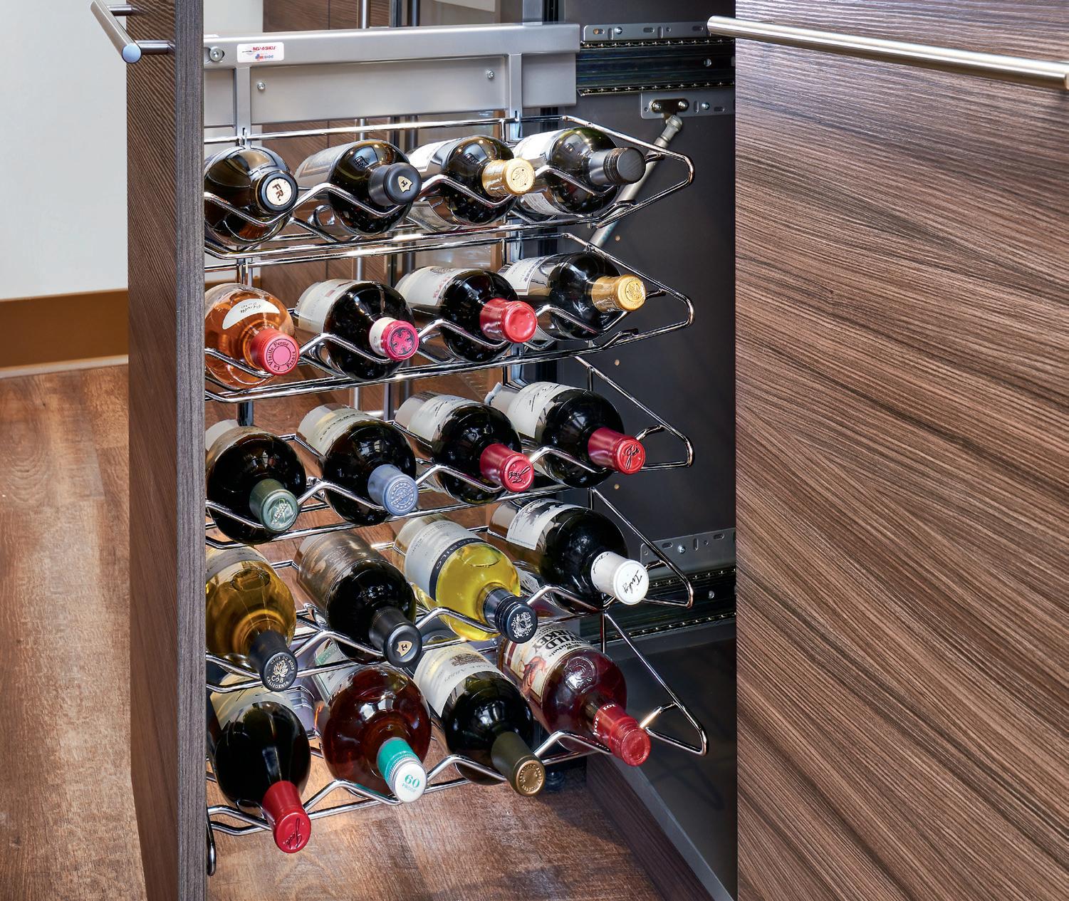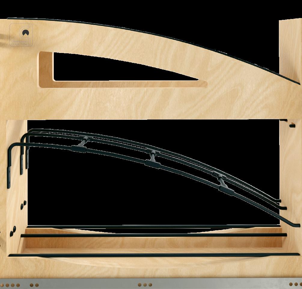 Designed for 9” and 12” base cabinets, now offered in walnut or maple with concealed rear backstops that provide extra safety and stability, patented door-mount brackets (US Patent No. 8,388,076) and BLUM MOVENTO softclose slides that provide smooth operation and easy installation.