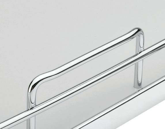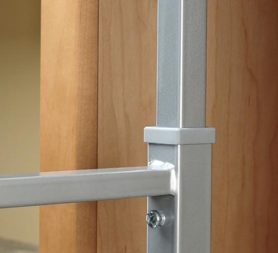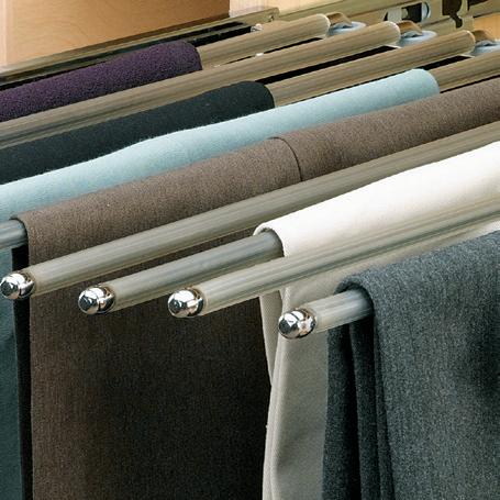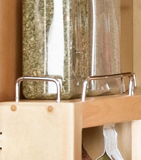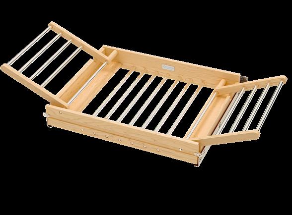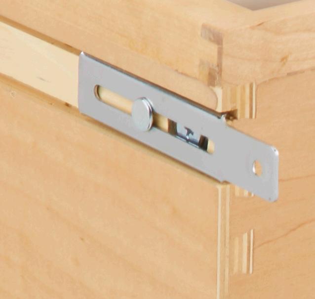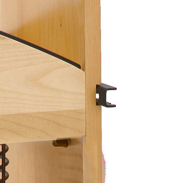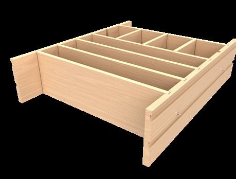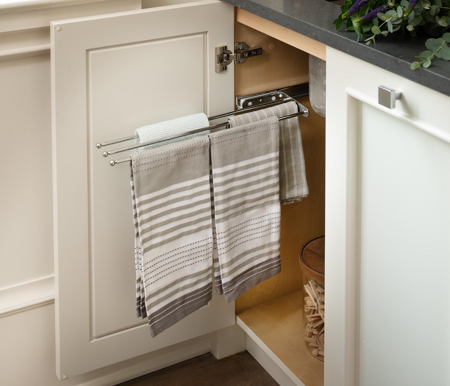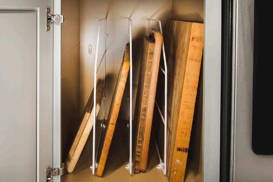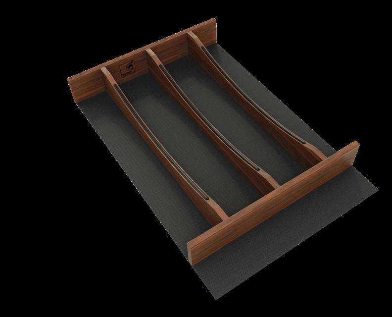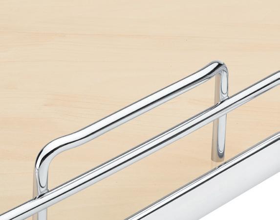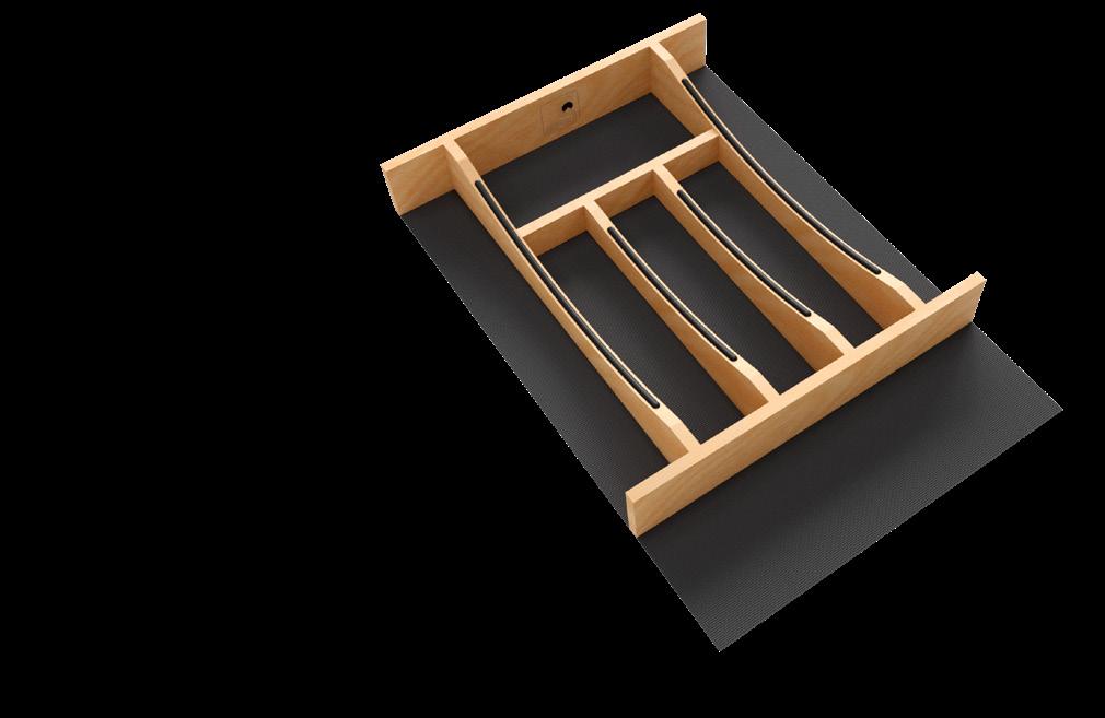Designed for 9” and 12” base cabinets, now offered in walnut or maple with patented door-mount brackets (US Patent No. 8,388,076), concealed rear stops that provide extra safety and stability, one fixed divider for bakeware and three removable, adjustable T-Bars for foil, plastic wrap, food storage bags and more.