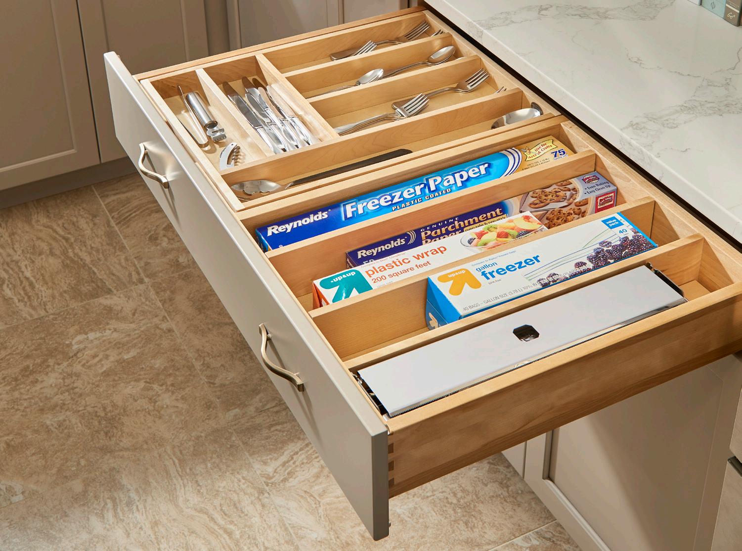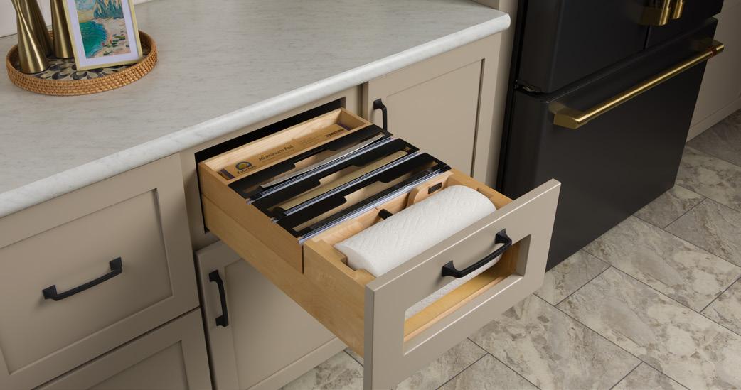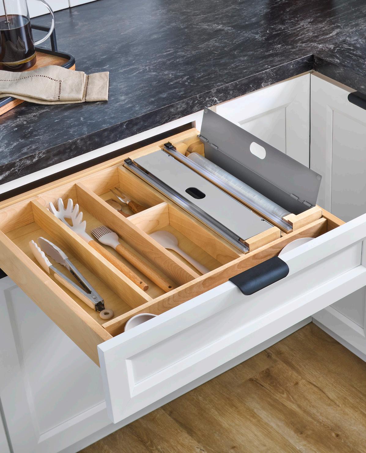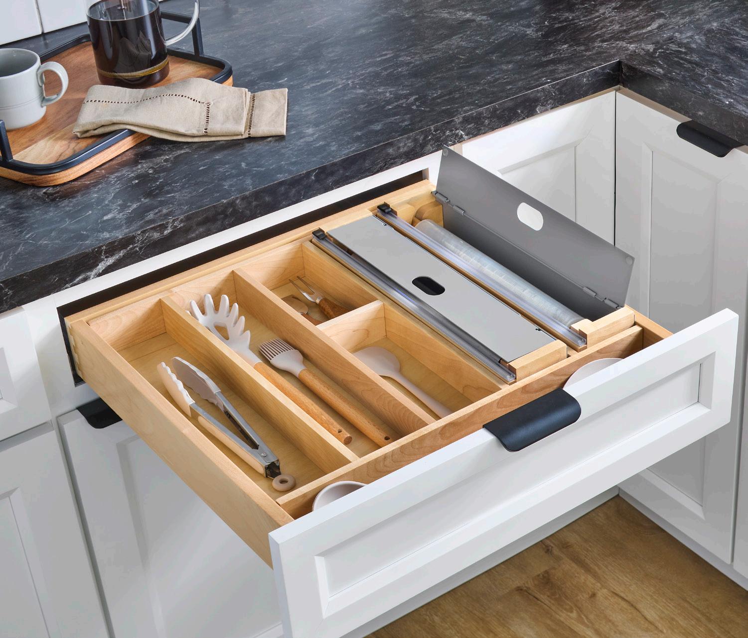 Stop struggling with hard-to-store boxes of aluminum foil, plastic wrap, parchment paper and more. Restore order to your drawers with the all-new design 4FWI Series Foil Wrap Insert from Rev-A-Shelf ®