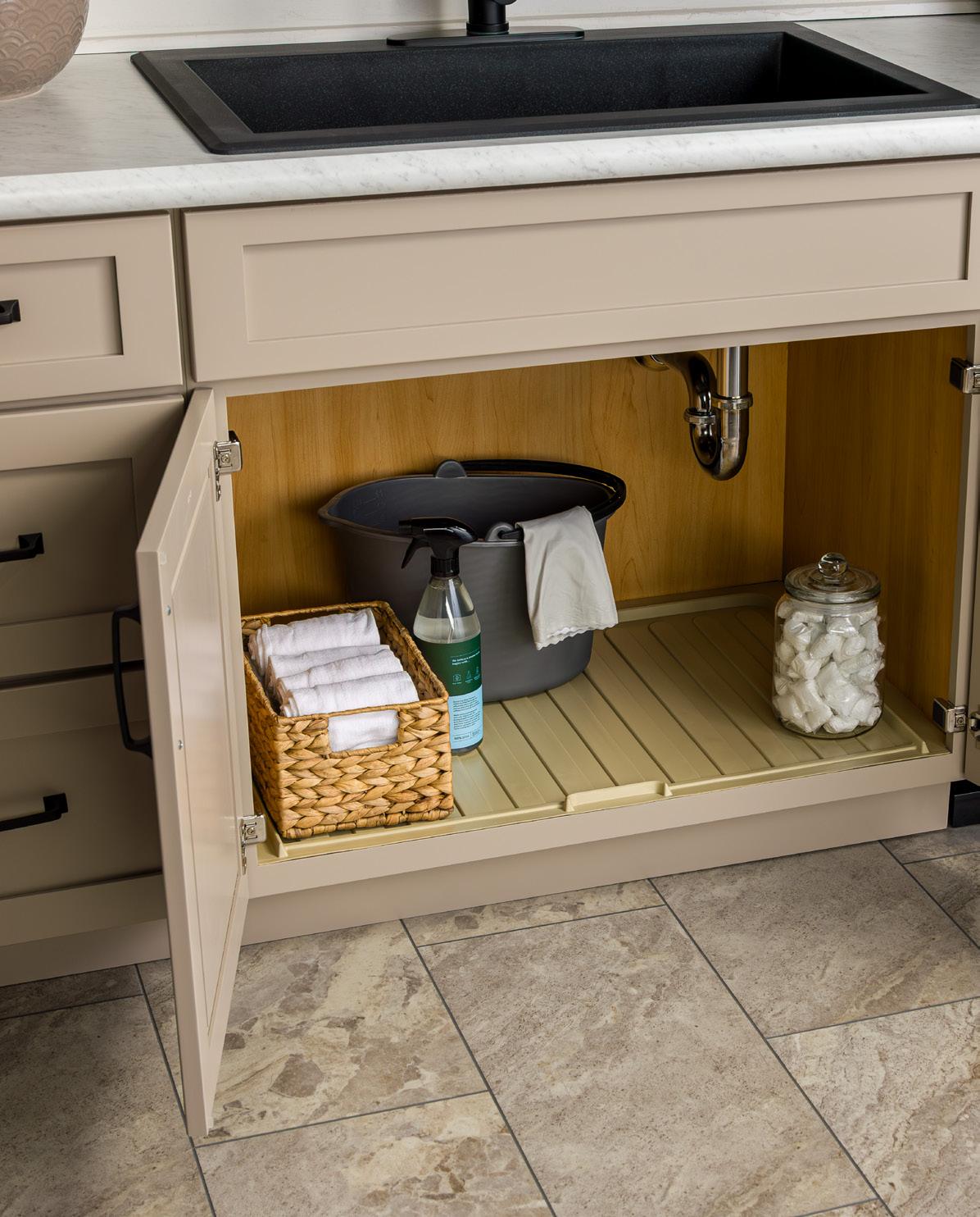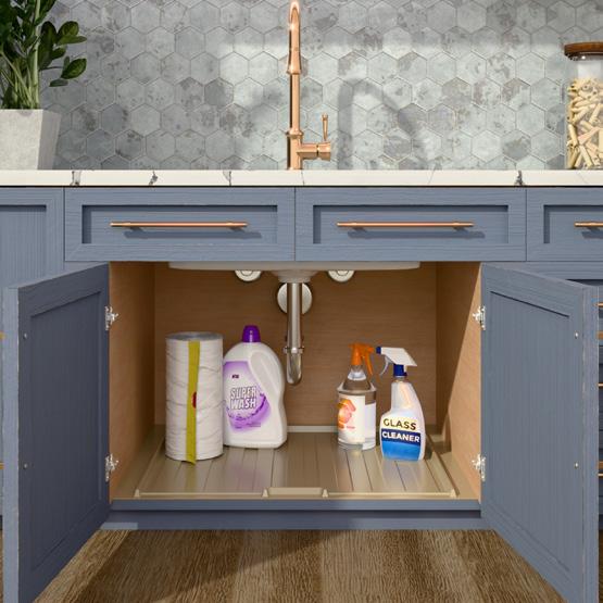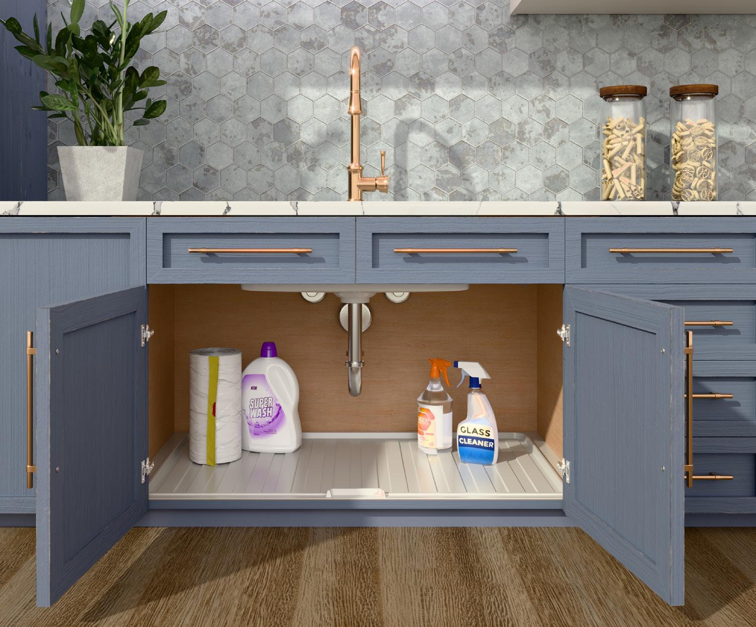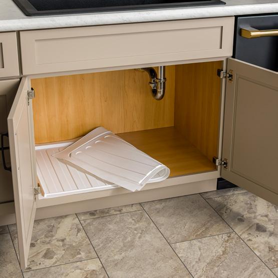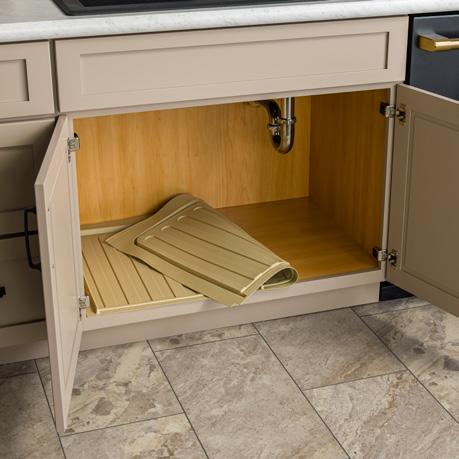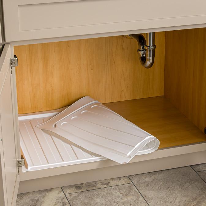Water damage never gives a warning but our SBDTF & SBVDTF Series Drip Trays are ready when it happens. Designed to be your cabinet’s first line of defense, these low-profile, flexible trays install easily, even in tight spaces and help stop small leaks from becoming big problems. Each tray holds up to 2.2 qts., channeling water safely out where it can be seen, while resisting everyday household chemicals and cleaning up in seconds. The trimmable design ensures a perfect fit every time.