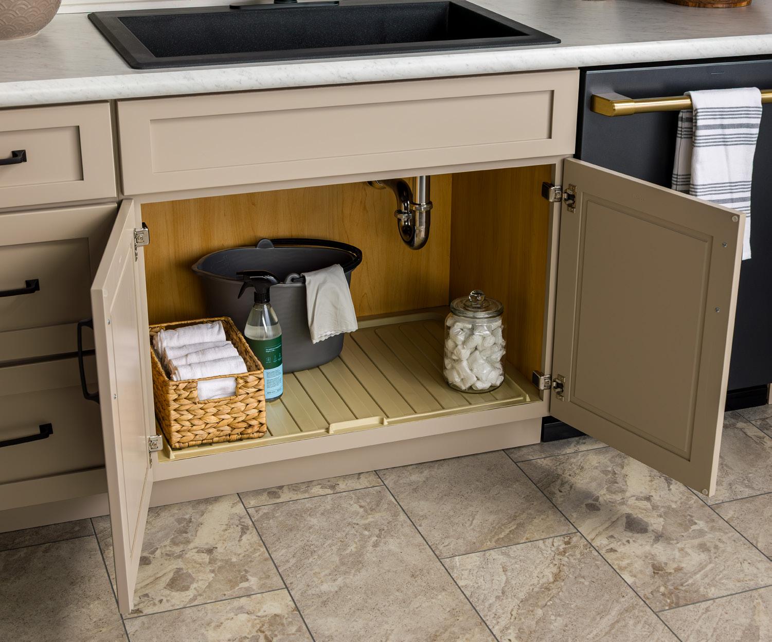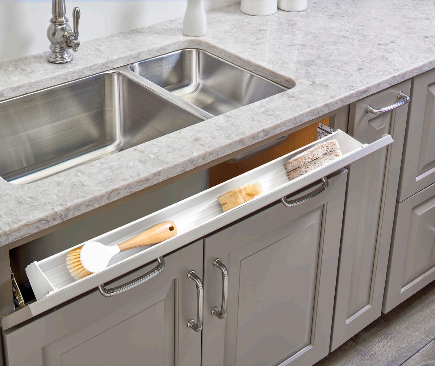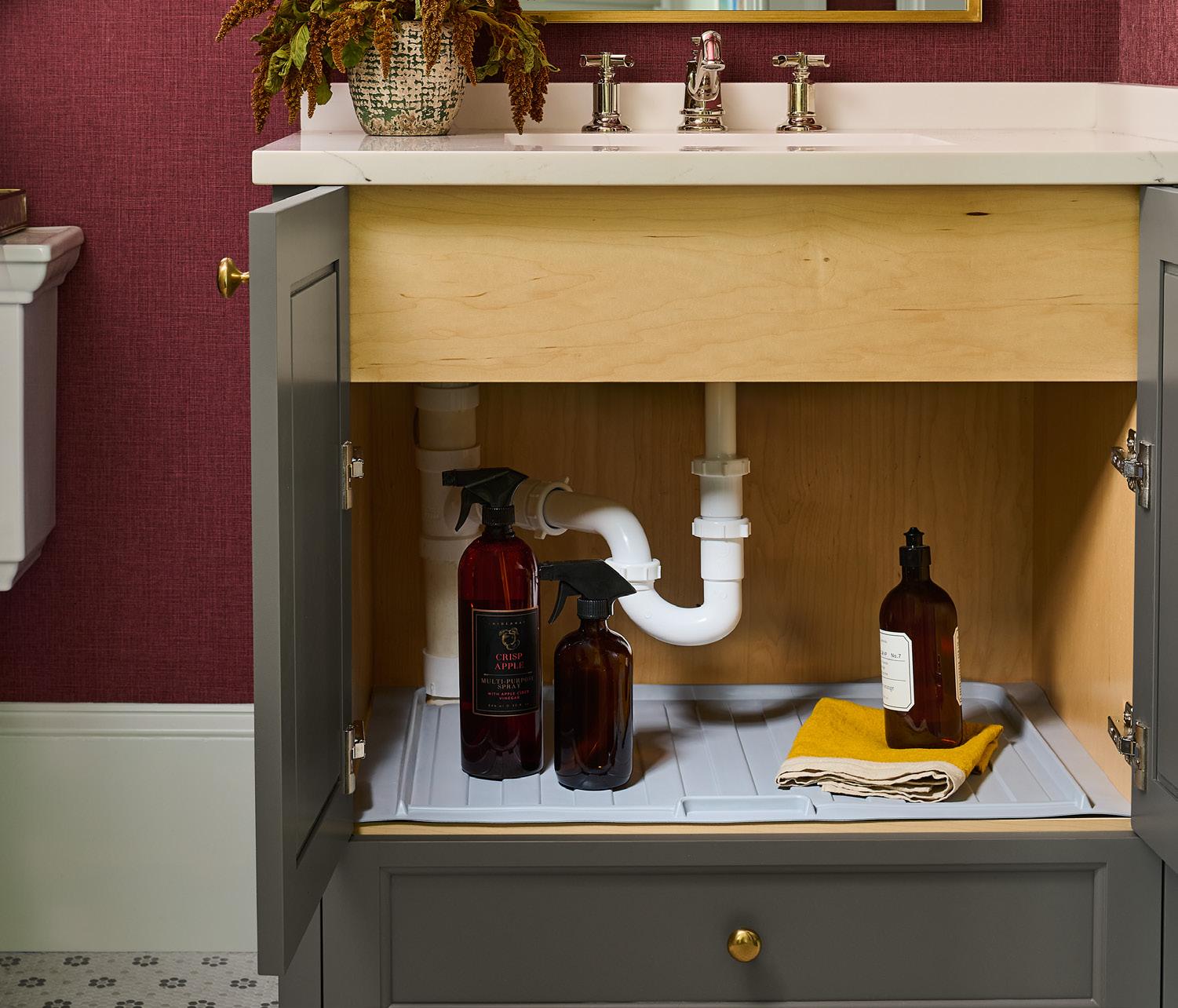 Water damage never gives a warning but our SBDTF & SBVDTF Series Drip Trays are ready when it happens. Designed to be your cabinet’s first line of defense, these low-profile, flexible trays install easily, even in tight spaces and help stop small leaks from becoming big problems. Each tray holds up to 2.2 qts., channeling water safely out where it can be seen, while resisting everyday household chemicals and cleaning up in seconds. The trimmable design ensures a perfect fit every time.