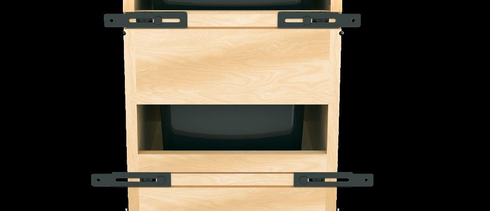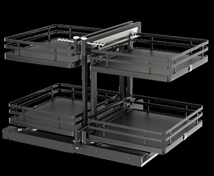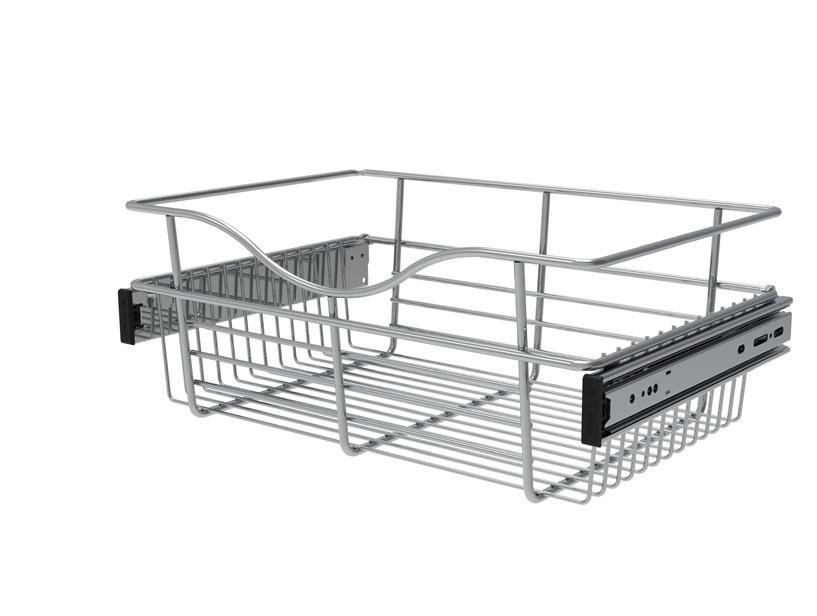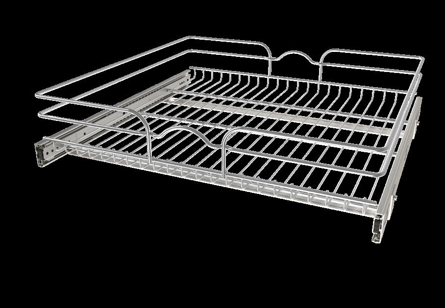 with up to four minimalist, open-wire bins, a sturdy bottom shelf, and BLUM MOVENTO soft-close slides for smooth and reliable operation. Concealed rear stops provide extra safety and stability and patented black door-mount brackets (US Patent No. 8,388,076) provide easy installation.