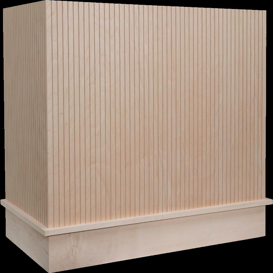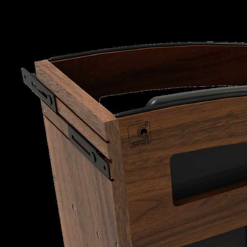 Designed for 9” and 12” base cabinets and now offered in walnut or maple, the 448CC features a fixed top and bottom shelf, an adjustable middle shelf, and curved details that enhance both style and functionality.