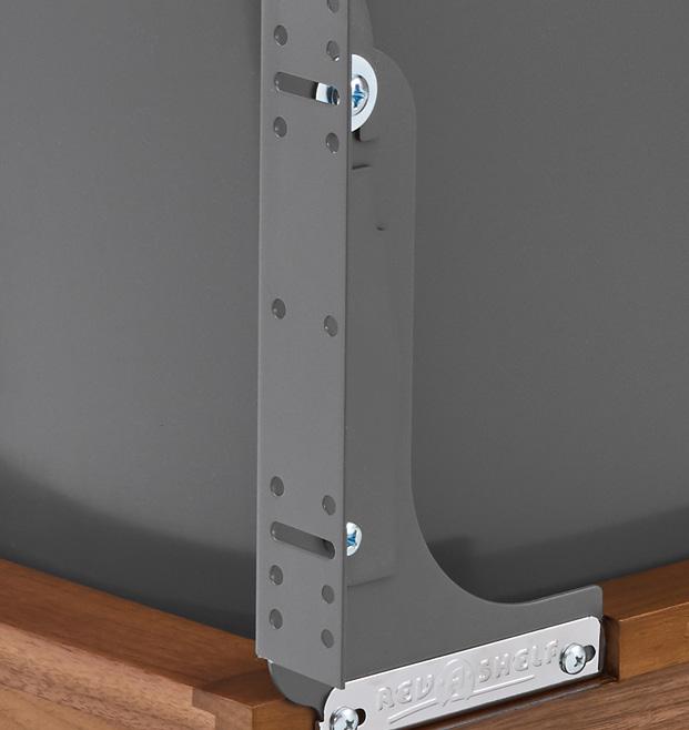 The 5349 Series from Rev-A-Shelf ® sets a new standard for premium design and functionality. Featuring Italian-inspired elegance, these units offer a heavyduty aluminum frame and smooth, soft-closing slides for effortless operation. The included door-mount hardware allows you to seamlessly attach your cabinet door, creating a sleek, cohesive look that integrates beautifully into your cabinetry.