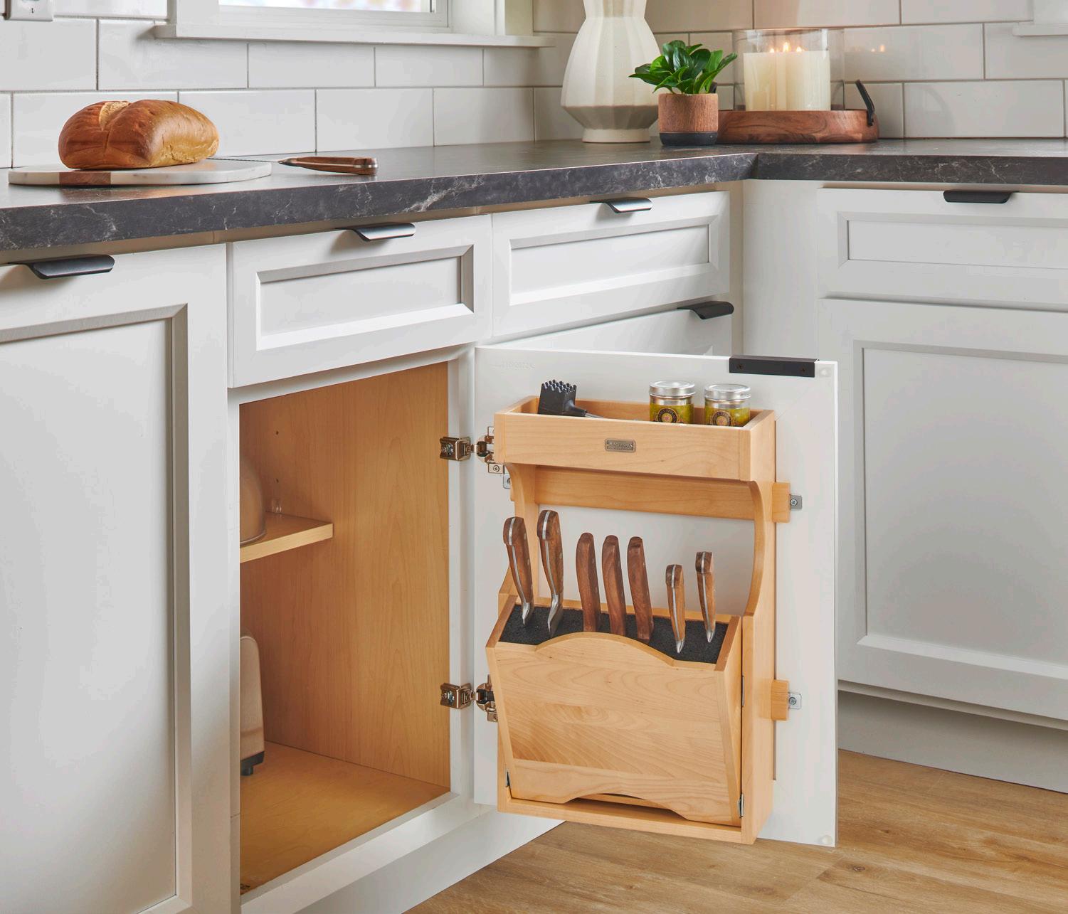 Store your kitchen knives, shears, meat thermometers, and more in style with the 448KBCC Craftsman Collection Knife Block Base Cabinet Pullout. Part of our Craftsman Collection, this pullout organizer combines timeless style and exceptional functionality.
