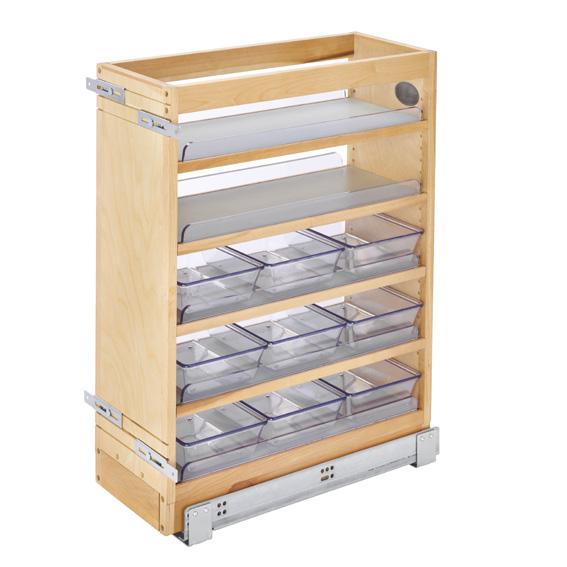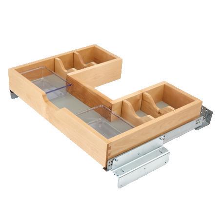 Maple U-Shaped Pullout w/ (4) Adjustable Dividers and (2) Acrylic Bins (Side mount unit shown)