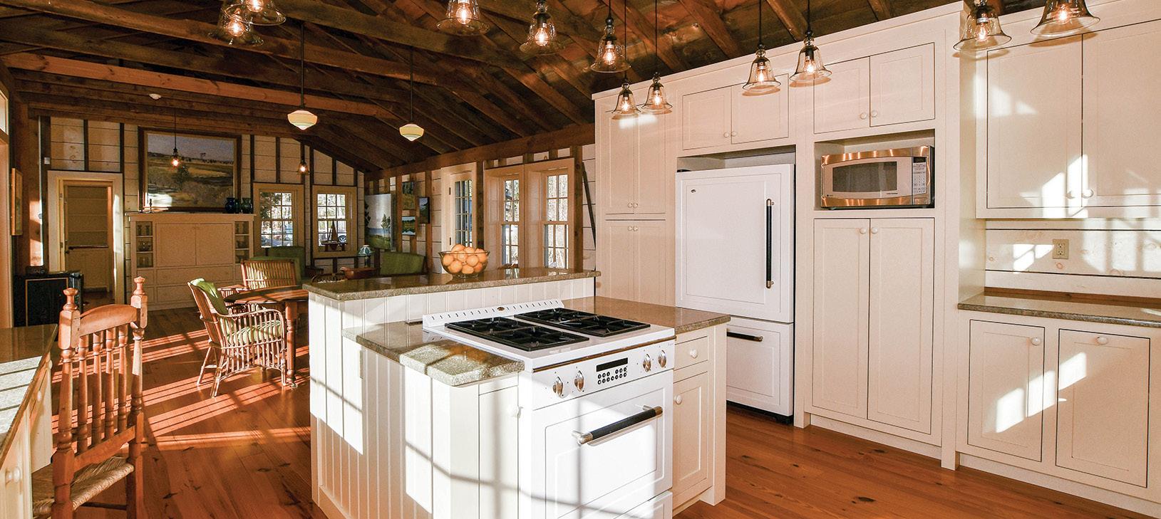 An architectural marvel, this historic 100-year-old repurposed barn on the water in Marion defines luxury living in a whole new light