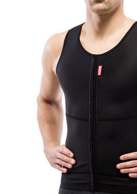Campos de aplicación: terapia de compresión postoperatoria tras una cirugía de: ginecomastia o para la reconstrucción de la región pectoral, cirugía torácica y liposucción de espalda.