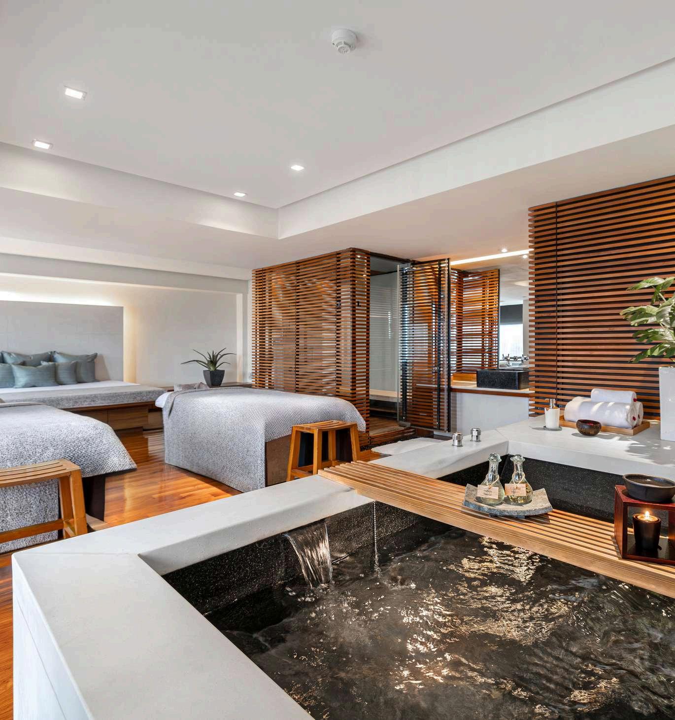 Pearl Spa invites you into a sanctuary of ocean-inspired luxury, where the elegance of lustrous pearls meets serene tranquility. The pristine white interiors, illuminated by a coralshaped chandelier, curve gracefully like ocean waves, with sapphire accents reflecting the sea’s beauty. Each treatment room blends light wood finishes with delicate Sino-Portuguese motifs, creating a serene retreat. With the soothing aromas of therapeutic oils and the gentle murmur of water, indulge in traditional Thai massages and luxurious spa treatments that restore tranquility and rejuvenate your spirit.