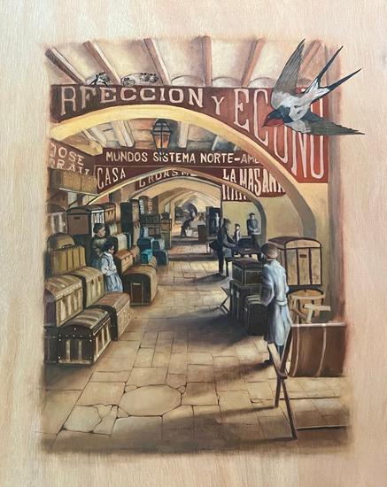 L'obra, inspirada en una imatge històrica de l'arxiu municipal de Barcelona, intenta capturar l'atmosfera vibrant d'antics mercats de revendes, mentre incorpora els emblemàtics nius d'oreneta que puntegen el paisatge urbà de la ciutat, amb una oreneta volant cap a ells, simbolitzant la continuïtat de la vida enmig del canvi constant.