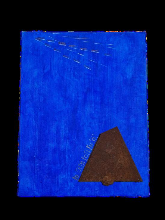 Sobre tela, planxa de ferro, pintura acrilica i tinta xinesa. Volen les oerenetes pel capvespre blau de Barcino; per damunt teulades, o potser velàmens…. Cerquen on ajocar-se en la negra nit