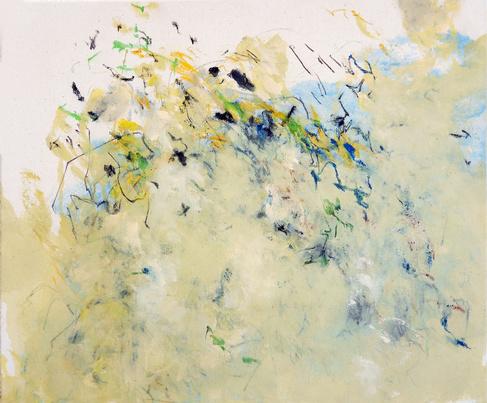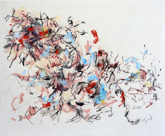 No es tractava de crear una imatge en moviment ni una imatge del moviment, sinó transcriure un fet diari, una acció natural que es contempla. Recollir el gir, el so llunyà i familiar, les capes de significats coŀlectius i personals. He utilitzat sobretot el traç (llenguatge molt pròxim a l'escriptura) per intentar captar totes aquestes capes. He preparat la tela com ho faig habitualment a les meves obres: comprant-la crua, entelant-la jo mateixa i aplicant una preparació artesanal feta a base de cola de conill. Valoro el procés, la importància de mantenir-se a prop del que significa, de la seva història i els seus vincles. L'obra es posiciona ja en aquests primers passos. I un cop seques les diferents capes d'emprimació he tractat la tela com si fos paper: pel material escollit i per com s'ha construït l'obra.