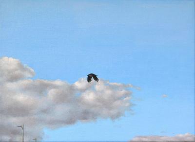 Amb aquesta obra intento plasmar com les orenetes s'apropien de la ciutat, un lloc tancat i misteriós i que contrasta amb l'espai del cel.