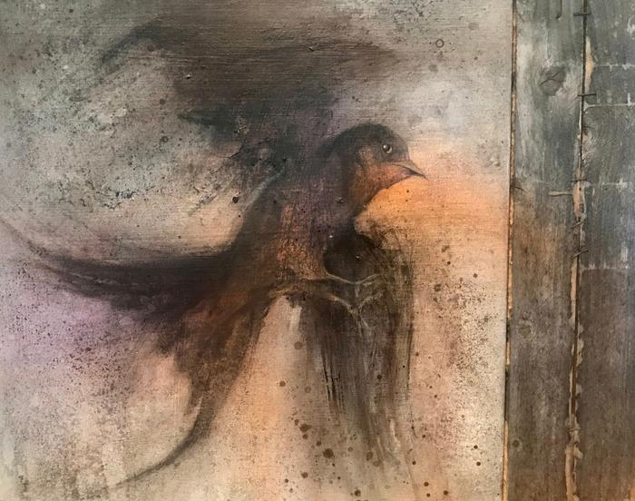 Moviment és una obra que captura l'essència de l'arribada de les orenetes a Barcelona a la primavera. En aquesta peça, he representat una oreneta en ple vol, simbolitzant l'inici del seu cicle vital quan arriben per construir els seus nius. El dinamisme i la fluïdesa del moviment estan plasmats a través de traços i matisos, evocant l'energia i la rapidesa d'aquestes aus en la seva migració i en el procés de creació de les seves llars.