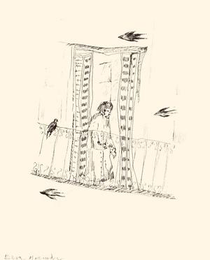 Obra realitzada amb punta fina negre sobre paper. Inspirat en l'àvia desconeguda que surt a mirar pel balcó de davant de casa meva.