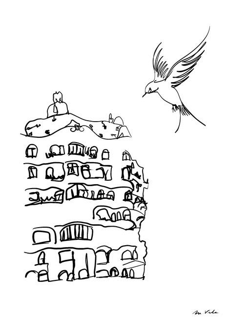 Aquesta obra fusiona la majestuositat de La Pedrera de Barcelona amb la gràcia d'una oreneta en ple vol, simbolitzant la llibertat i els somnis que s'eleven més enllà dels límits. L'oreneta, amb el seu cos esvelt i les ales desplegades, s'enlaira sobre els sinuosos i únics contorns de La Pedrera, capturant l'essència de la ciutat i la seva arquitectura modernista. Els traços delicats de l'oreneta contrasten amb la imponent i artística façana de l'edifici, creant una harmonia visual que celebra la coexistència entre la natura i l'art humà