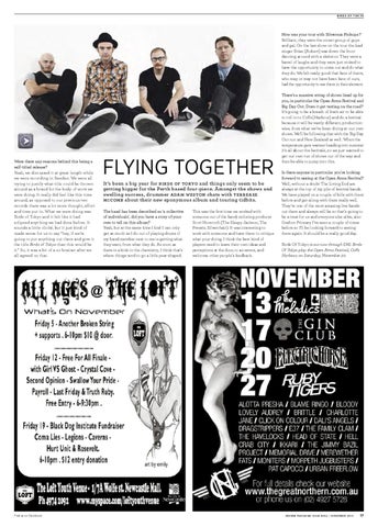 Flying Together It’s been a big year for Birds of Tokyo and things only seem to be getting bigger for the Perth based four-piece. Amongst the shows and swelling success, drummer Adam Weston chats with Terrease M c Comb about their new eponymous album and touring tidbits. The band has been described as ‘a collective of individuals’, did you have a story of your own to tell on this album? Yeah, but at the same time I find I can only get as much as I do out of playing drums if my band member next to me is getting what they want, from what they do. As soon as there is a kink in the chemistry, I think that’s where things tend to go a little pear-shaped.