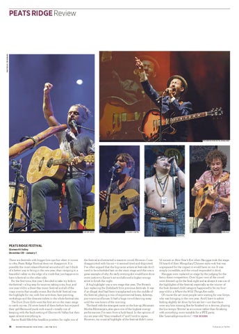 ’til sunset on New Year’s Eve when Hanggai took the stage. I’d heard of their Mongolian/Chinese style rock but was unprepared for the impact it would have on me. It was simply incredible, and the crowd responded in kind. Hanggai were replaced on stage by the judging for the fancy dress competition. Over 75 per cent of the crowd were dressed up for the final night and as always it was one of the highlights of the festival, especially as the winner of the best dressed child category happened to be my fouryear-old in a Where the Wild Things Are outfit. Of course the act most people were waiting for was Gotye, who was bringing in the new year. And I have to admit feeling slightly let down by his set list — not that there were any hits missing. But he finished on a downer, playing the low tempo ‘Bronte’ as an encore rather than finishing with something more suitable for a NYE party, like ‘Learnalilgivinanlovin’. ~Tim Boehm
